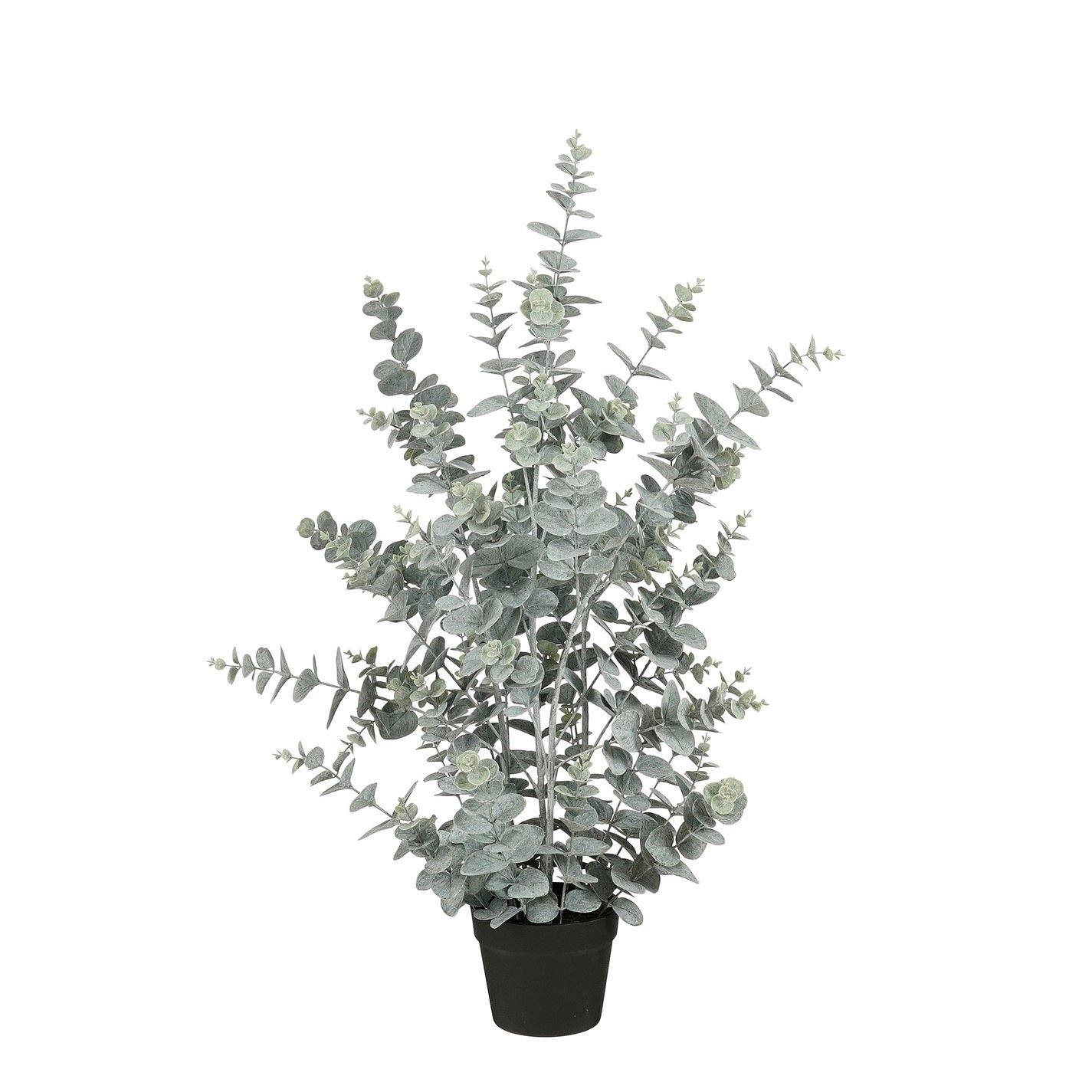 Bring a fresh, natural look into your home with the Eucalyptus artificial plant from Mica Decorations. The detailed green leaves with a subtle white finish create a realistic and atmospheric appearance, without the need for watering or maintenance. It comes in a sturdy black base pot, measuring H13 x 16 cm, providing firmness and stability. Place it in a decorative planter for an extra stylish touch. Perfect for any space where you want greenery without the hassle! It has a height of 96 cm and a diameter of 38 cm.