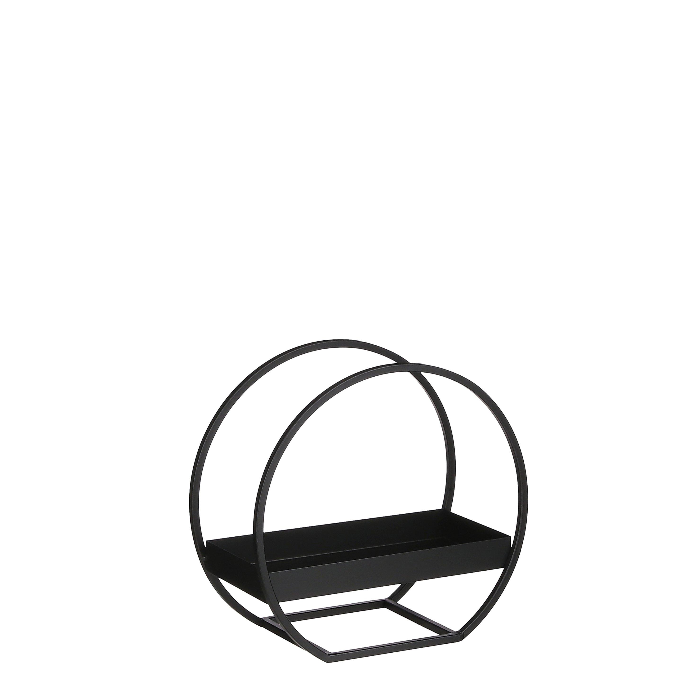 This decoration rack from Mica Decorations is ideal as an extra place for fun decorations. For example, a plant, a statue or a candlestick. The circular design makes it slightly different from a normal decoration rack. In addition, the high edge ensures that your decorations are safe. The rack is made of metal and has a black colour. Very modern and therefore suitable for many interiors. The dimensions are L30 x W15 x H28 cm.