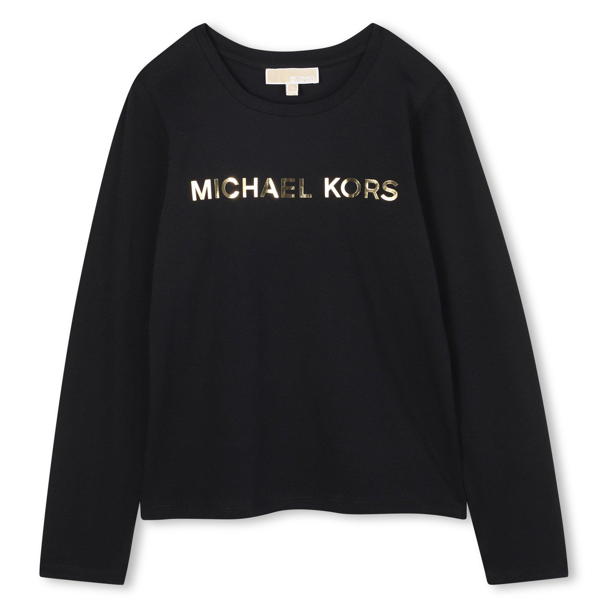 The Michael Kors MK Metallic Long Sleeve T-Shirt features prominent branding across a relaxed fit. Designed for everyday comfort, this piece pairs a casual t-shirt build with metallic detailing that adds subtle distinction.