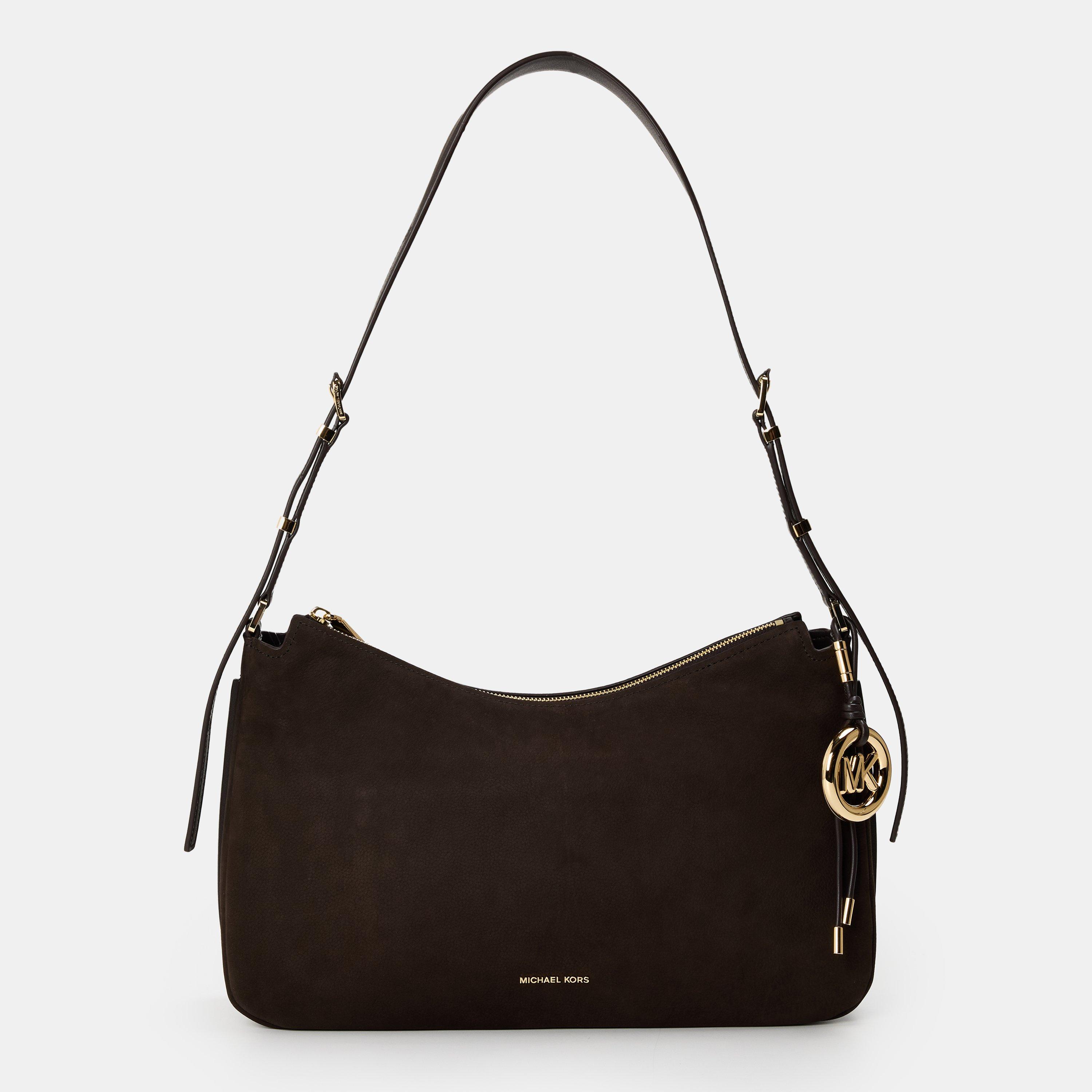 MICHAEL Michael Kors' Nolita Hobo Bag offers lady-like charm with its curved design. This designer handbag features a spacious interior and graceful draping that complements everyday style.