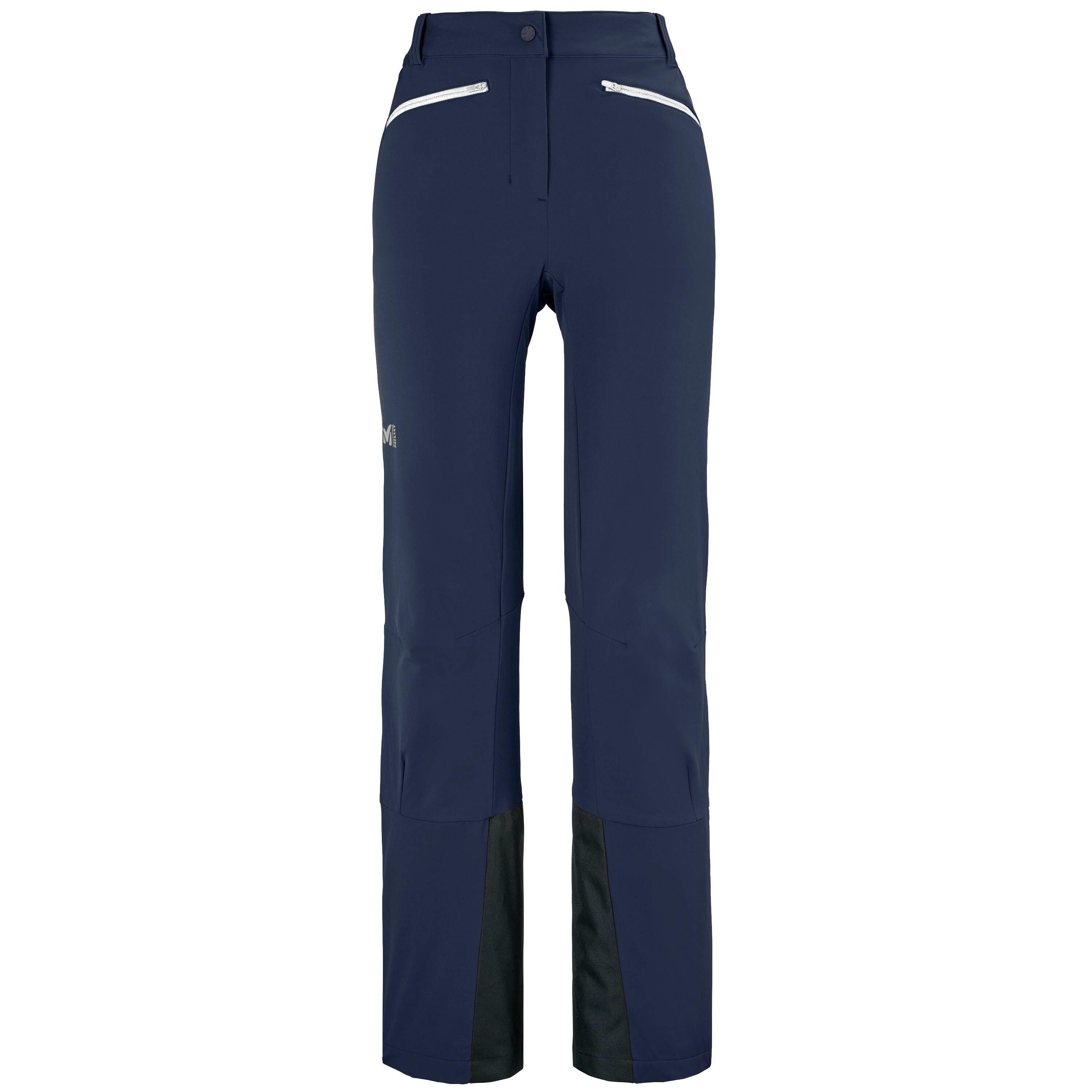 Millet Rutor Trousers Womens Hard wearing and stretchy, the women Rutor shield touring ski pants let you step up a gear during your high altitude expeditions. Their warm, breathable and water repellent X.C.S 200™ fabric keeps you comfortable, no matter how hard you push yourself to reach the peaks. The ergonomic shape adds to your well-being, with a perfectly fitted elastic belt, articulated knees and quick access to your shoes. When overheating, let the excess heat out in a blink thanks to the two-way zips on each side of these mountain trousers’ legs. The trousers feature two zipped hand warmer pockets, elasticated waistband, active, sporty feminine cut, ventilation zips at thighs and zipped elastic cuffs with gusset construction. The look is complete with the Millet reflective logo embossed on the right left for instant brand recognition whether your hiking or skiing. Material, 92% polyamide, 8% elastane. Machine washable at 30 degrees.