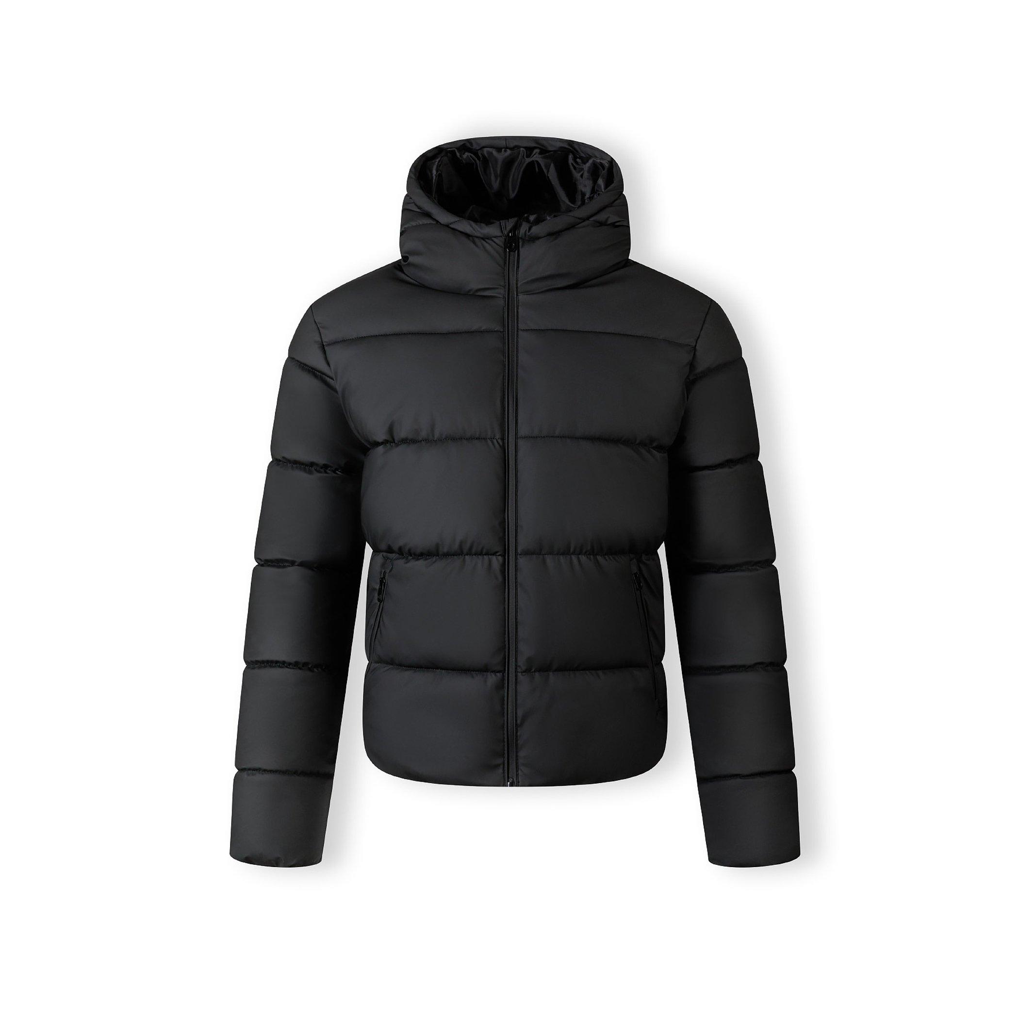 A men's PU jacket designed for transitional seasons, combining a clean, sporty silhouette with practical features. It showcases a functional high collar that enhances protection from the elements and a front zip closure that enables easy wear and secure fastening. The smooth black PU fabric promotes water runoff, providing resistance to light rain while maintaining a sleek appearance. Inside, a soft lining ensures consistent comfort during wear. Two zipped side pockets offer secure storage and easy access to essentials. Elasticated cuffs and hem create a close, flexible fit that prevents cold air ingress. Tonal lining accents introduce subtle visual contrast. A sleeve badge on the left arm adds a refined detail, completing a durable and practical outerwear option for varied weather conditions.