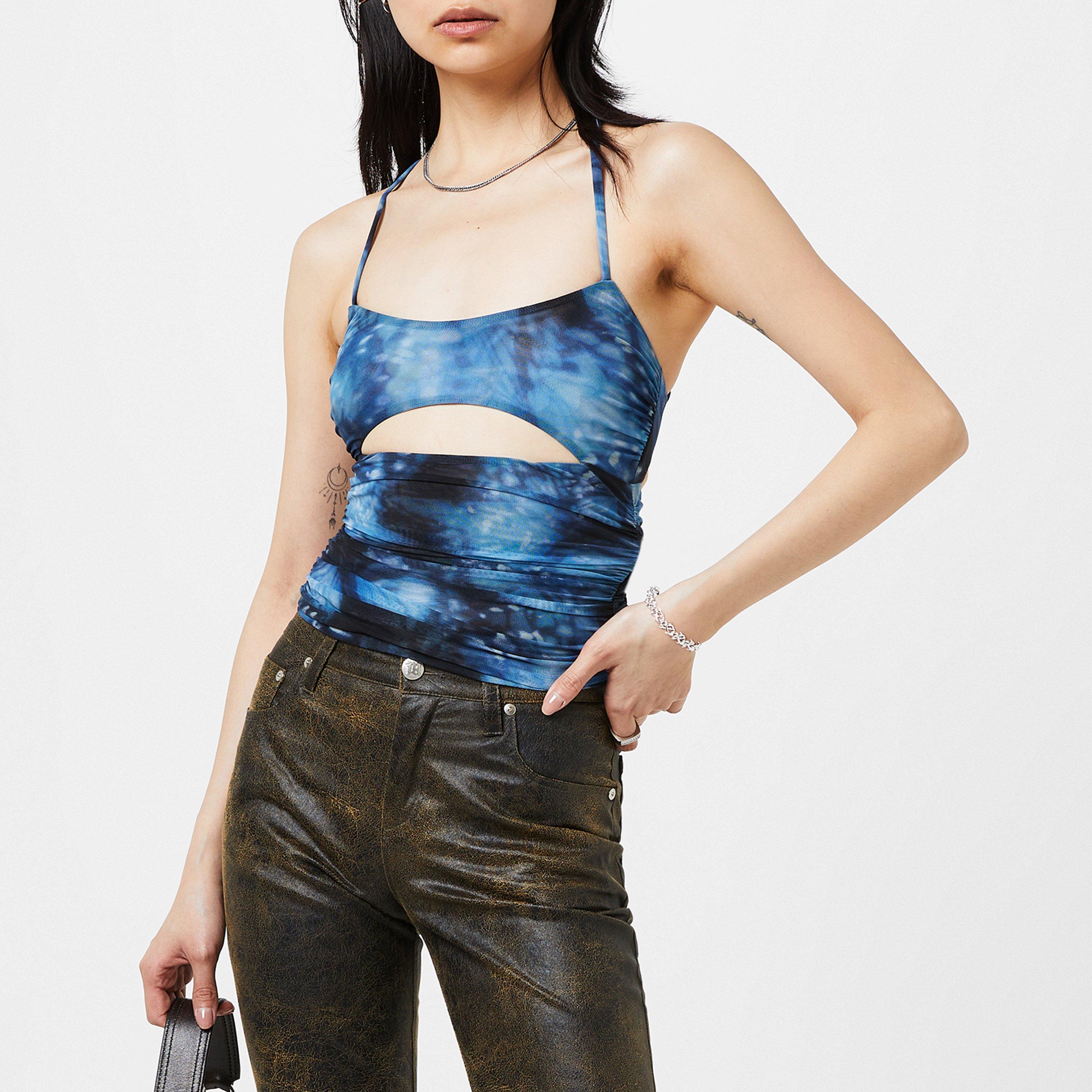 Mystical and modern this eye-catching mesh butterfly top from MISBHV is a must have for your next night out. Evocative of the 90's this mesh top has been experlty crafted from a stretchy polyamide and elastane construction achieving a lightweight, breathable wear that is both contemporary and chic. Framed with adjustable spaghetti, racer back straps for a structured appeal this sultry look is punctuated by the all over tie dye print for a dramatic edge whilst the cut-out detailing in the chest gives this an alluring appeal. Emboldened by the silver-tone monogram clasp closure in the back for a structured edge, whilst the rucheing detail adds a fluid touch. Hand wash.