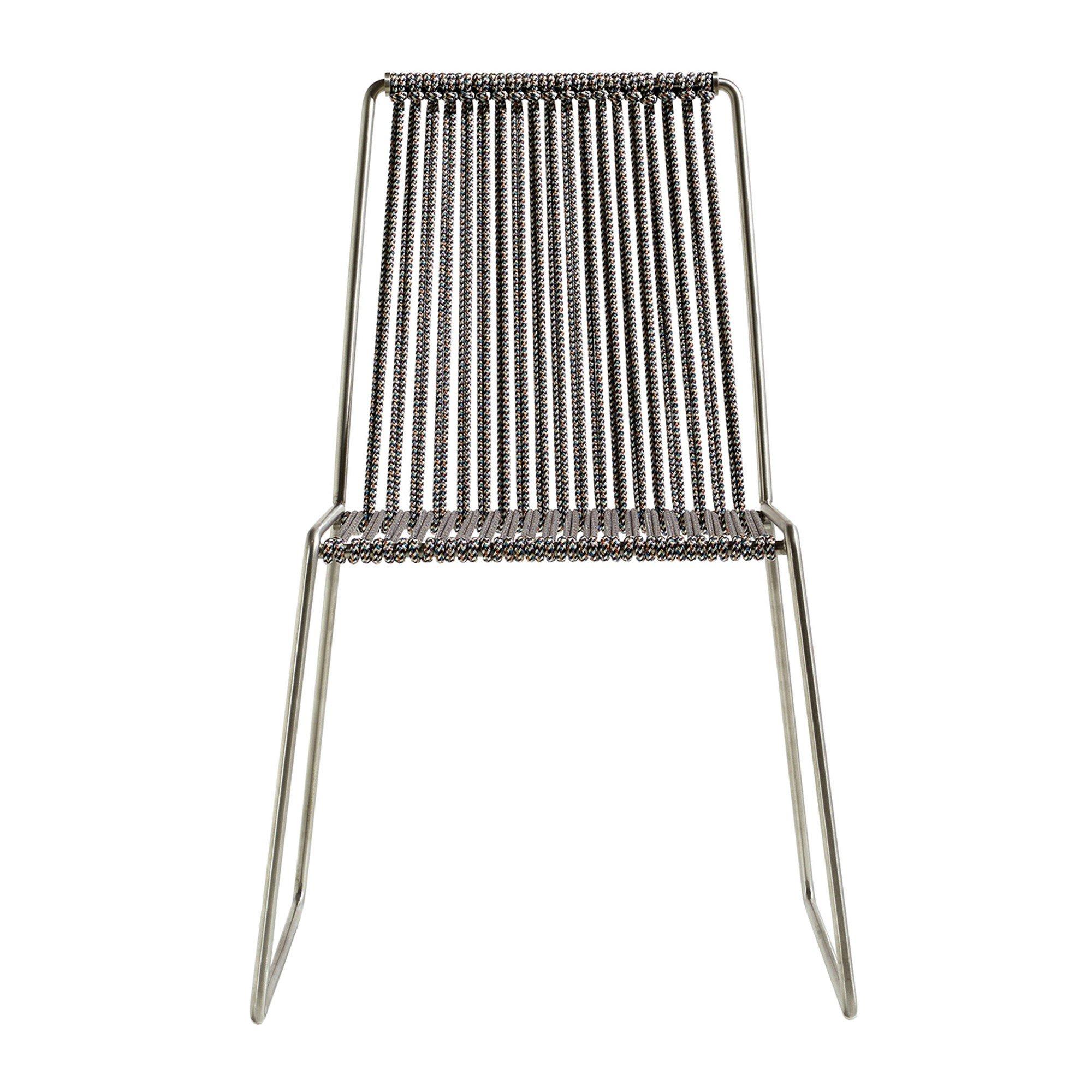 Bring fashion-forward design into your space with this Cordula chair from Missoni Home Collection. Crafted from curved stainless steel rods, it is covered with a handwoven rope with a micro-chevron design. Suitable for using both inside and out, pair this striking chair with others in the range for a coordinated look.