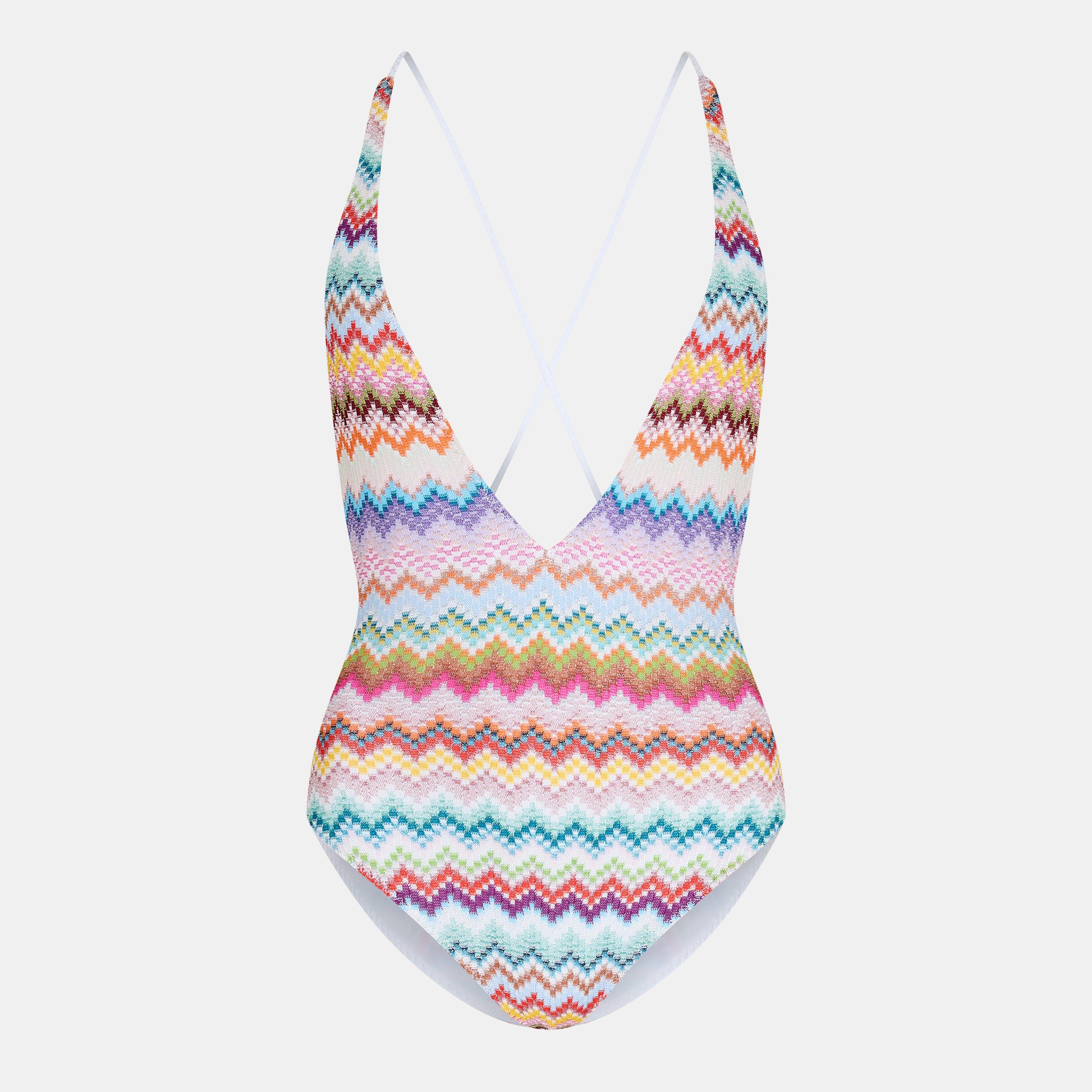 The Missoni Women's Plunge Swimsuit is cut with a plunge neckline and a sculpted shape. The one-piece design holds its shape across wear.