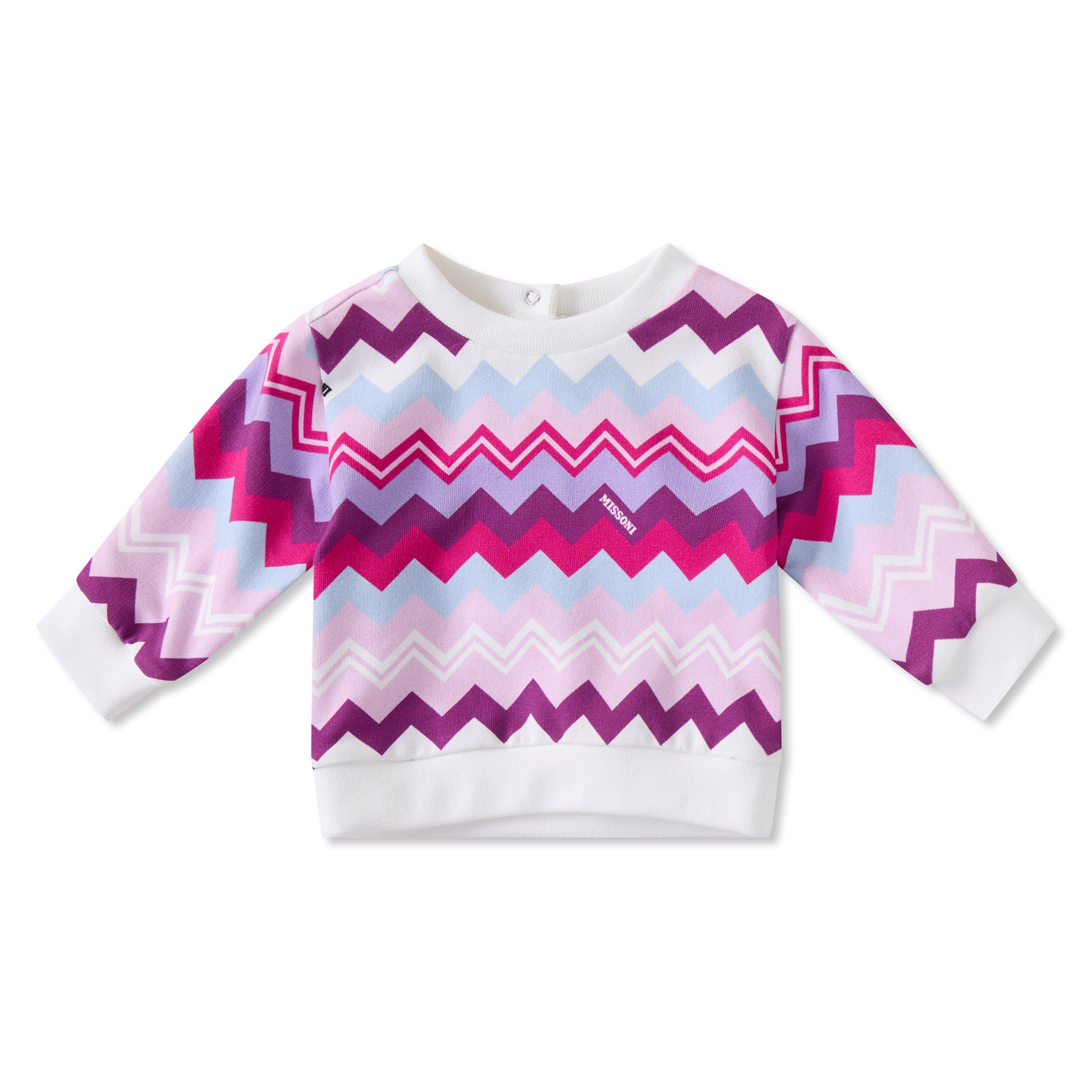 Missoni's Kids' Zigzag Knitted Crew-Neck Sweatshirt brings the brand's well-known pattern to children's fashion with a comfortable crew-neck design. This knitted piece pairs the recognisable Missoni pattern with practical comfort.