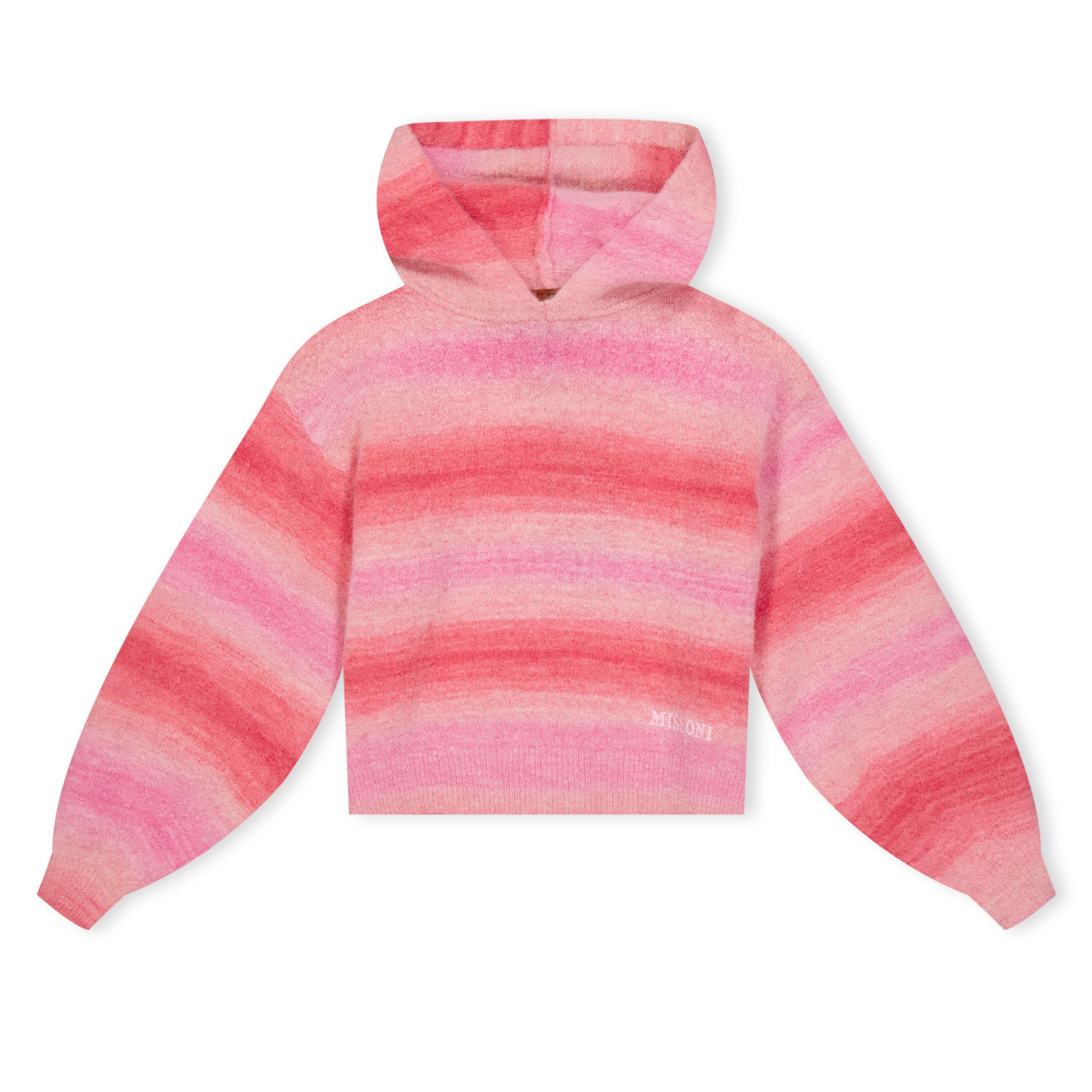 Missoni's Kids' Painterly Print Hoodie showcases the brand's artistic heritage through vibrant brushstroke patterns. This children's sweatshirt features a casual fit with a cosy hood and front pocket design, delivering both fashion and comfort as essential youth outerwear for younger wardrobes.