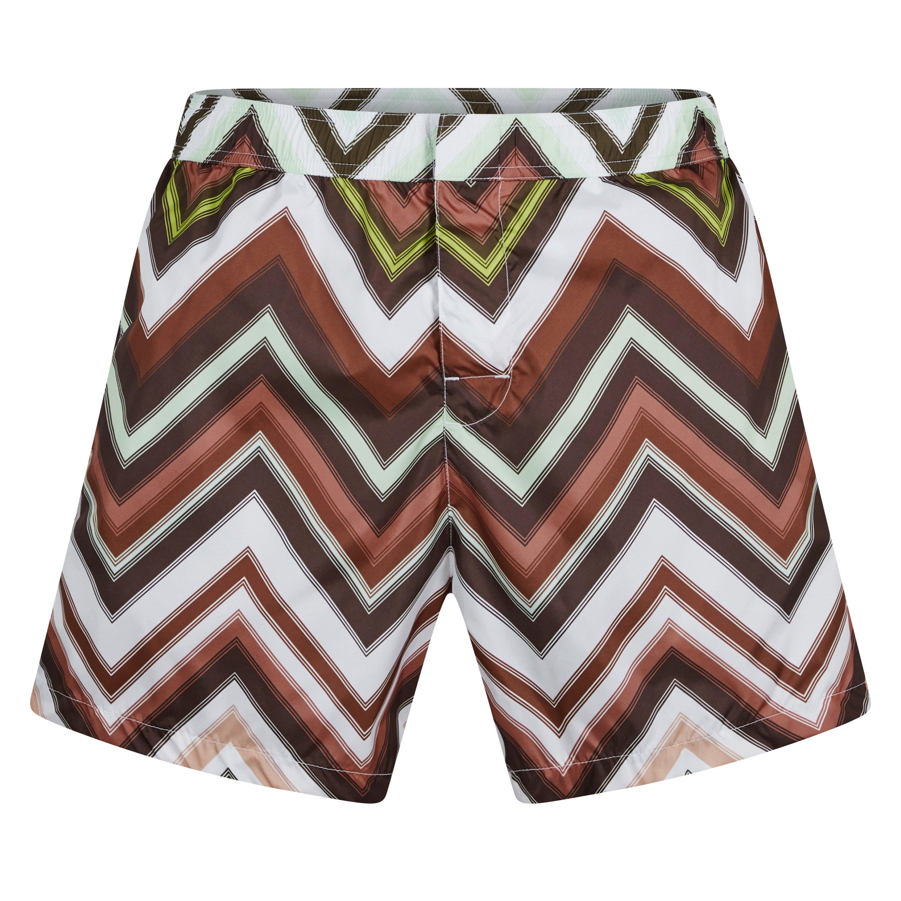 Defined by Missoni's iconic multicoloured zigzag patterns, these bermuda shorts will stand out wherever you are. So whether lounging by the hotel swimming pool or taking a dip in the cool ocean water, choose Missoni's Zigzag Swim Shorts.