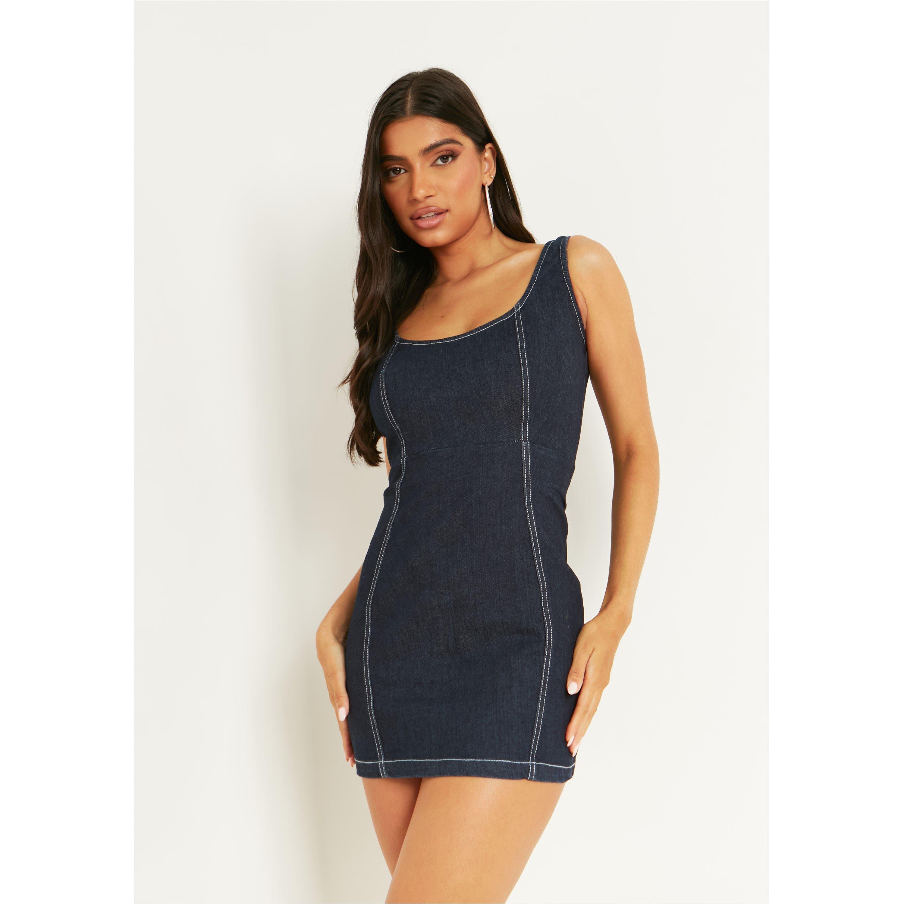Get ready to turn heads and slay the fashion game with our Denim Contrast Seam Mini Dress! This sassy number features a figure-hugging silhouette, daringly short length, and bold contrast stitching that adds a pop of attitude. Step out in style and let your inner diva shine!