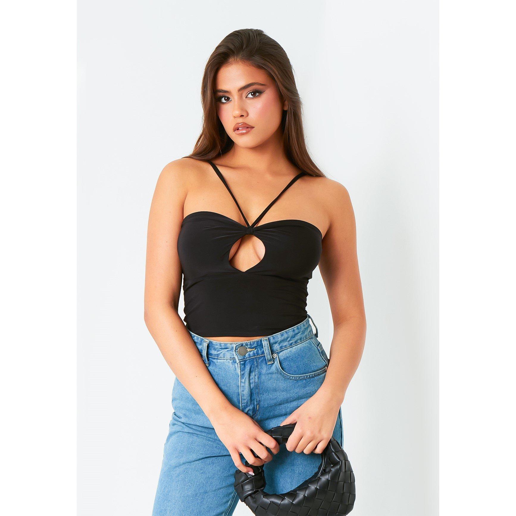 Effie Black Key Hole Cut Out Halter Neck Top: Sleek, sophisticated, and seductive. Elevate your style with this daring halter neck top featuring a subtle keyhole cutout, adding a touch of allure to any ensemble. Flaunt your fashion-forward flair effortlessly.