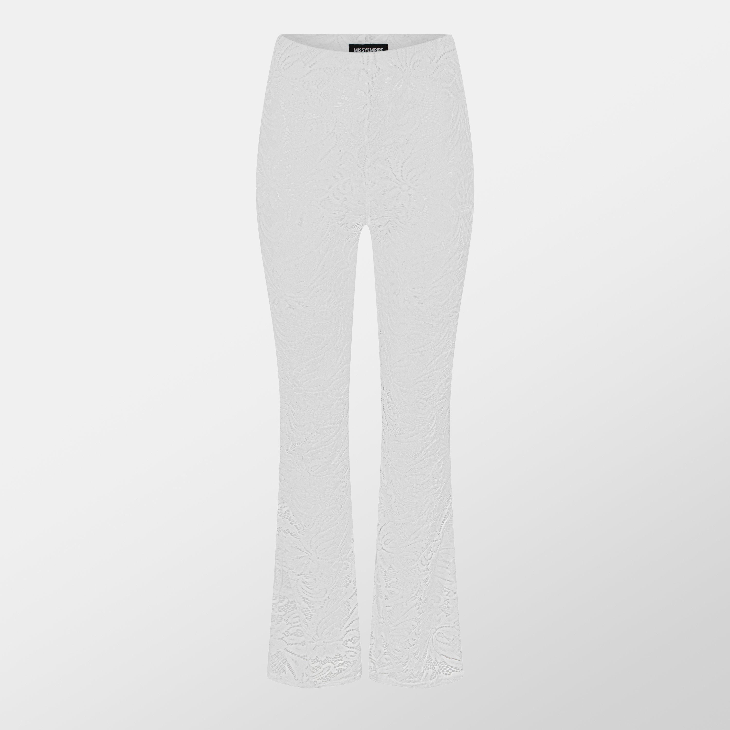 Step into effortless elegance with the Missy Empire Lace Flared Trousers. Crafted from luxurious lace, the intricate floral patterns create a captivating, feminine silhouette. The flattering flared cut elongates your legs, while the soft, lightweight fabric ensures comfort without compromising on style. Perfect for evenings out or chic daytime looks, these trousers offer a refined yet modern edge to your wardrobe.