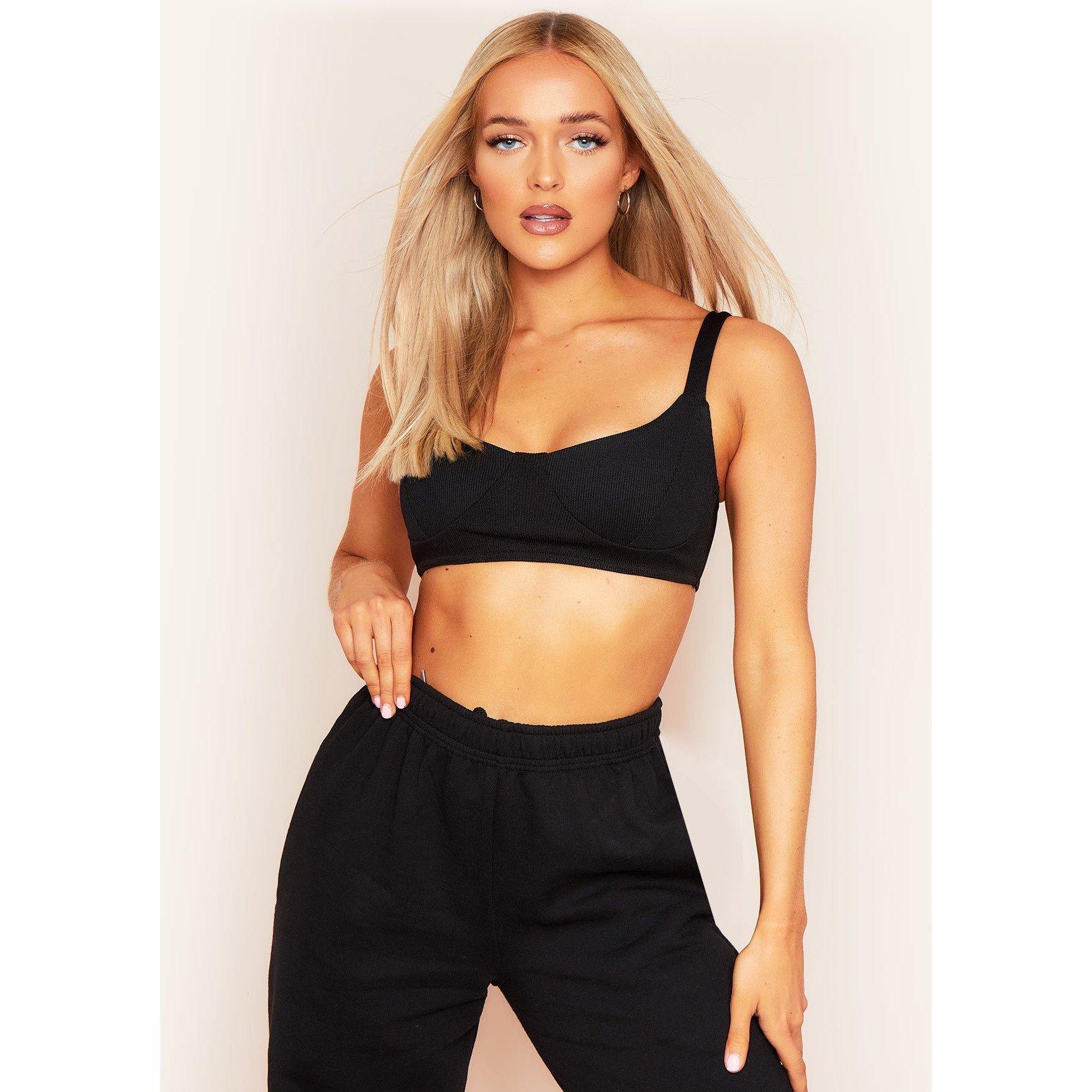 Get the look in our Ribbed Cupped Bralet Crop Top featuring cupped design, wide straps with a round neckline.