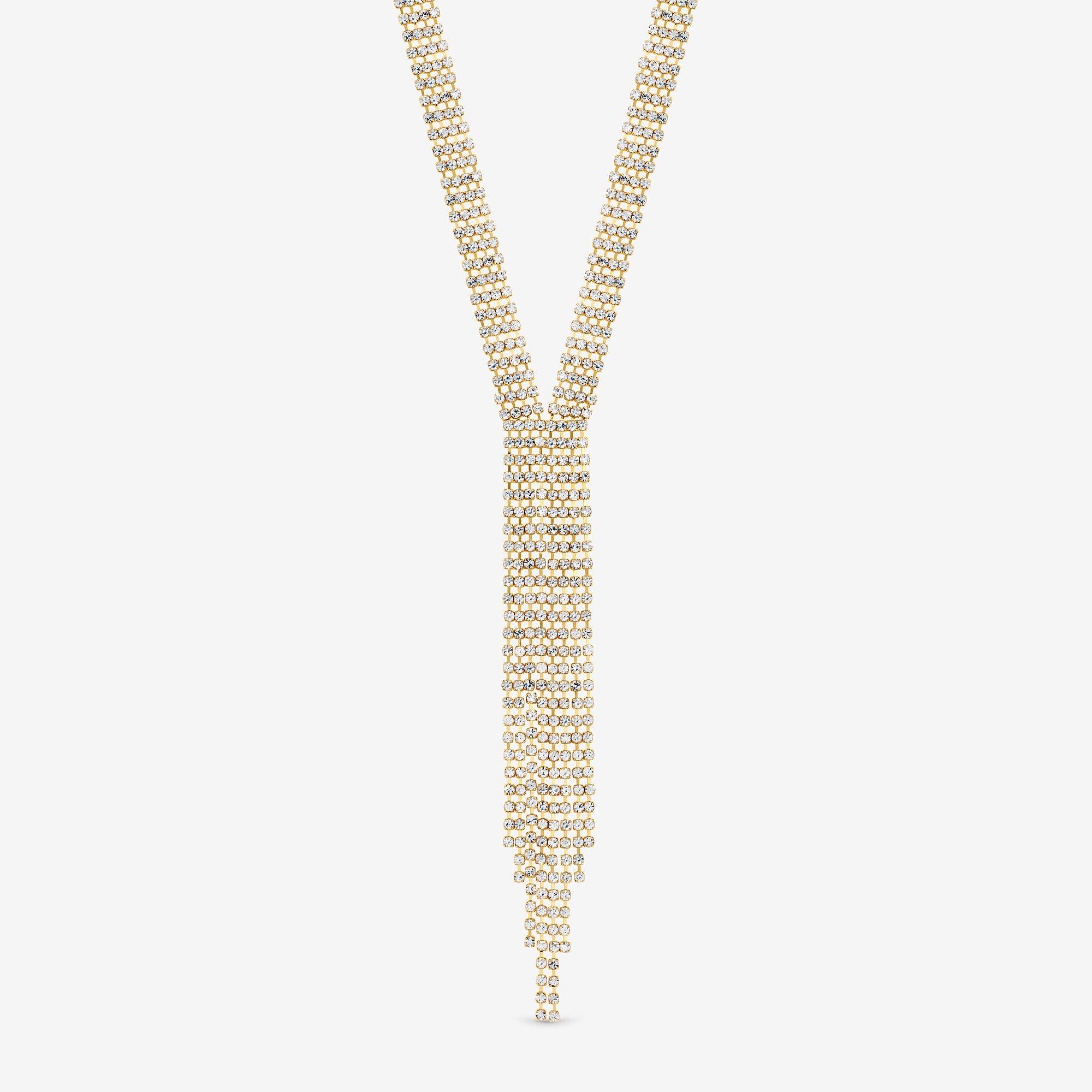 Add a touch of elegance to any outfit with the Mood Gold Crystal Multi Row Y Statement Necklace. Featuring a stunning layered design and sparkling crystals, this stand out piece effortlessly combines modern style with timeless shine. Perfect for elevating both casual and formal looks, this necklace is a must-have addition to your jewellery collection. Fastening: Lobster Clasp. Width dimension: 20mm. Length dimension: 430mm. Chain length: 16. Extender length: 3. Material: Gold Plated Base Metal.