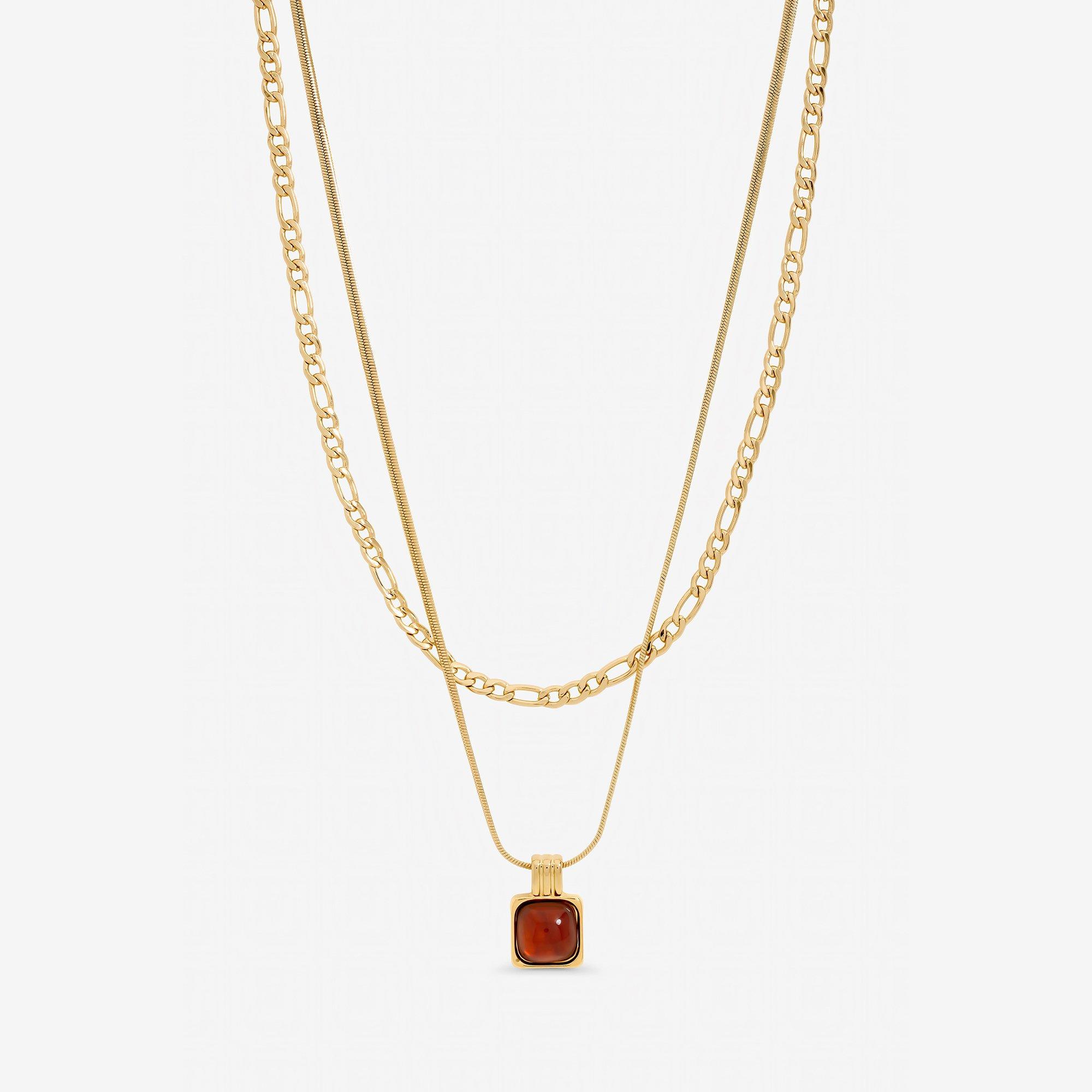 /Home/Accessories/Jewellery/Women's Jewellery/Necklaces/Gold Plated Double Layer Chain and Resin Necklace