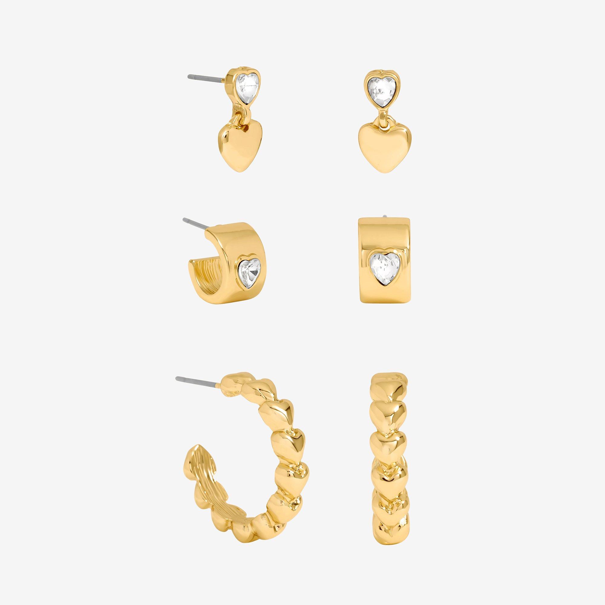 /Home/Accessories/Jewellery/Women's Jewellery/Earrings/Gold Polished & Crystal Heart Earrings - Pack of 3