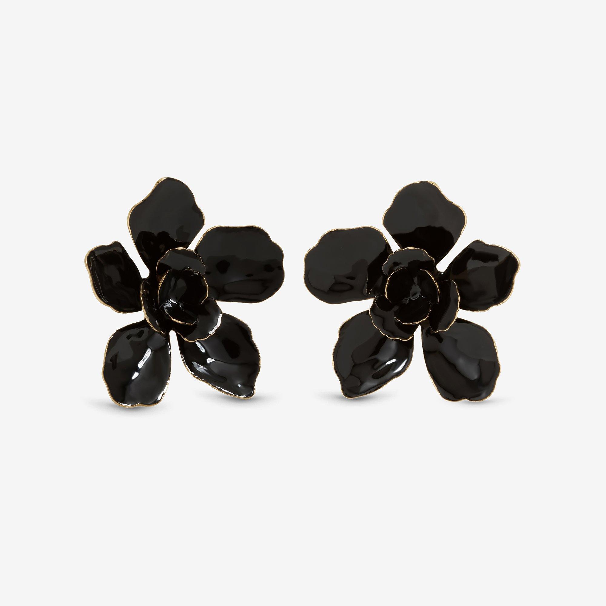 Our Mood Jet Statement Flower Earrings are made to stand out this season, featuring a delicate and elegant, these earrings pair polished gold tones with bold jet floral detailing. Their fresh, feminine design adds a subtle touch of charm to any look, making them perfect for both everyday wear and special occasions. Fastening: Post and bullet back. Width dimension: 43mm, length dimension: 43mm. Material: Gold plated base metal.