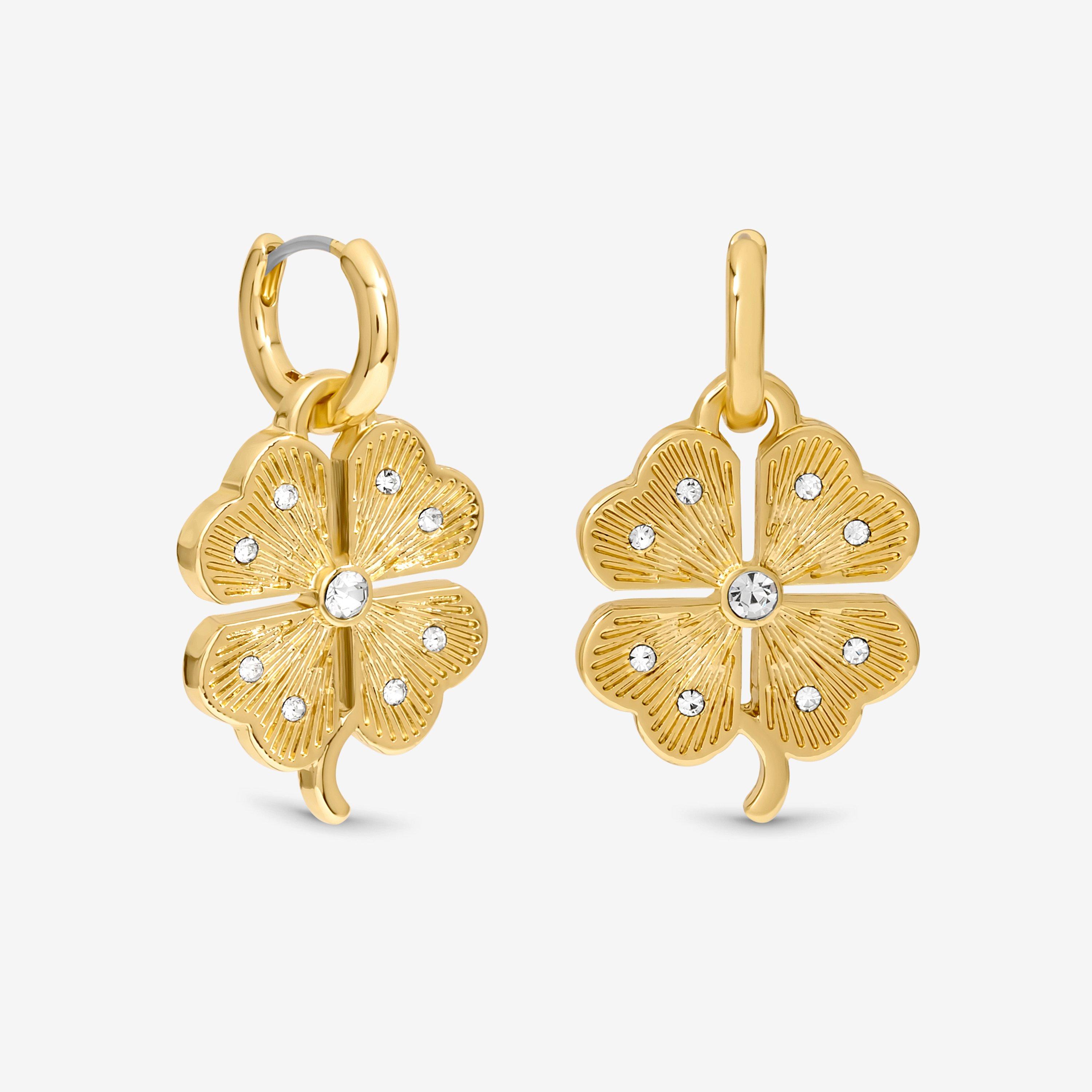 /Home/Accessories/Jewellery/Women's Jewellery/Earrings/Mood Gold & Crystal Clover Charm Huggie Earrings