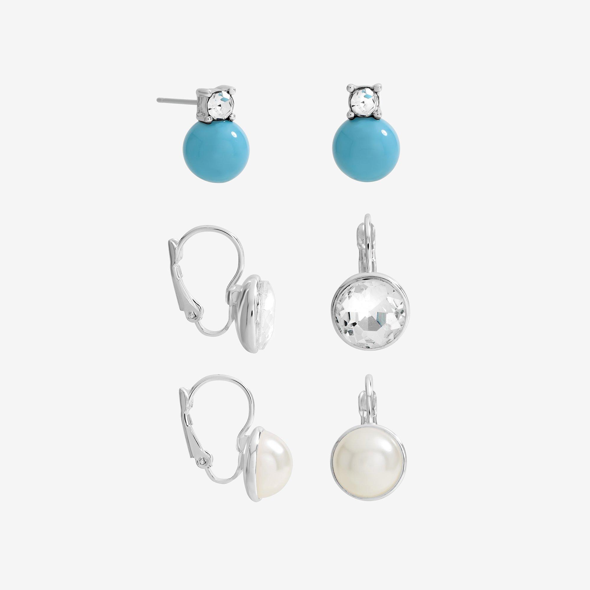 /Home/Accessories/Jewellery/Women's Jewellery/Earrings/Silver Crystal and Pearl Charm Hoops - Pack of 3