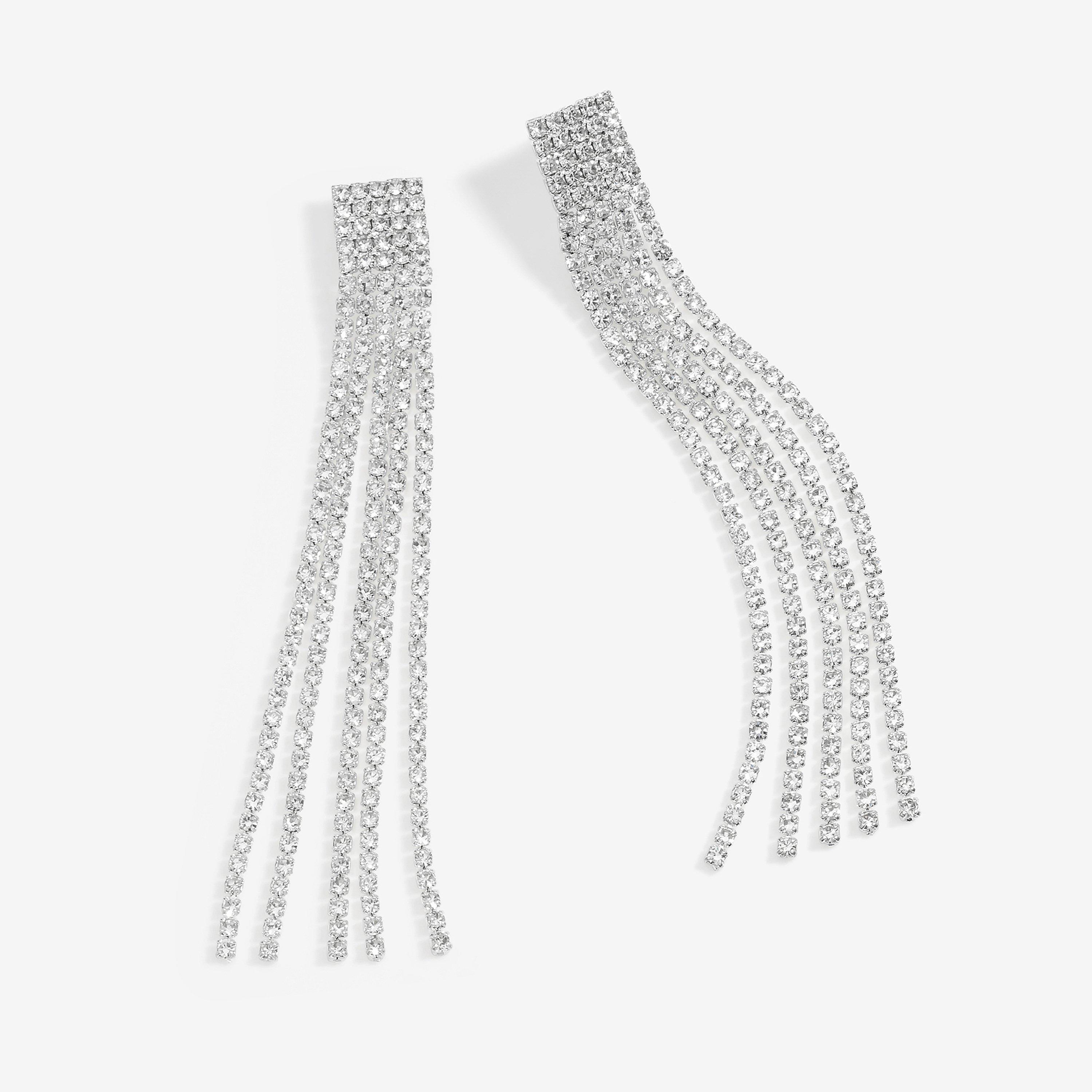 Make a statement with our Mood Silver Crystal Diamante Drop Earrings are a must-have in your jewellery box this season. Adorned in crystal stones, these earrings will add a touch of sparkle to any outfit. Fastening: Post and Bullet Back. Width Dimension: 8mm. Drop Dimension: 72mm. Material: Silver Plated Base Metal.