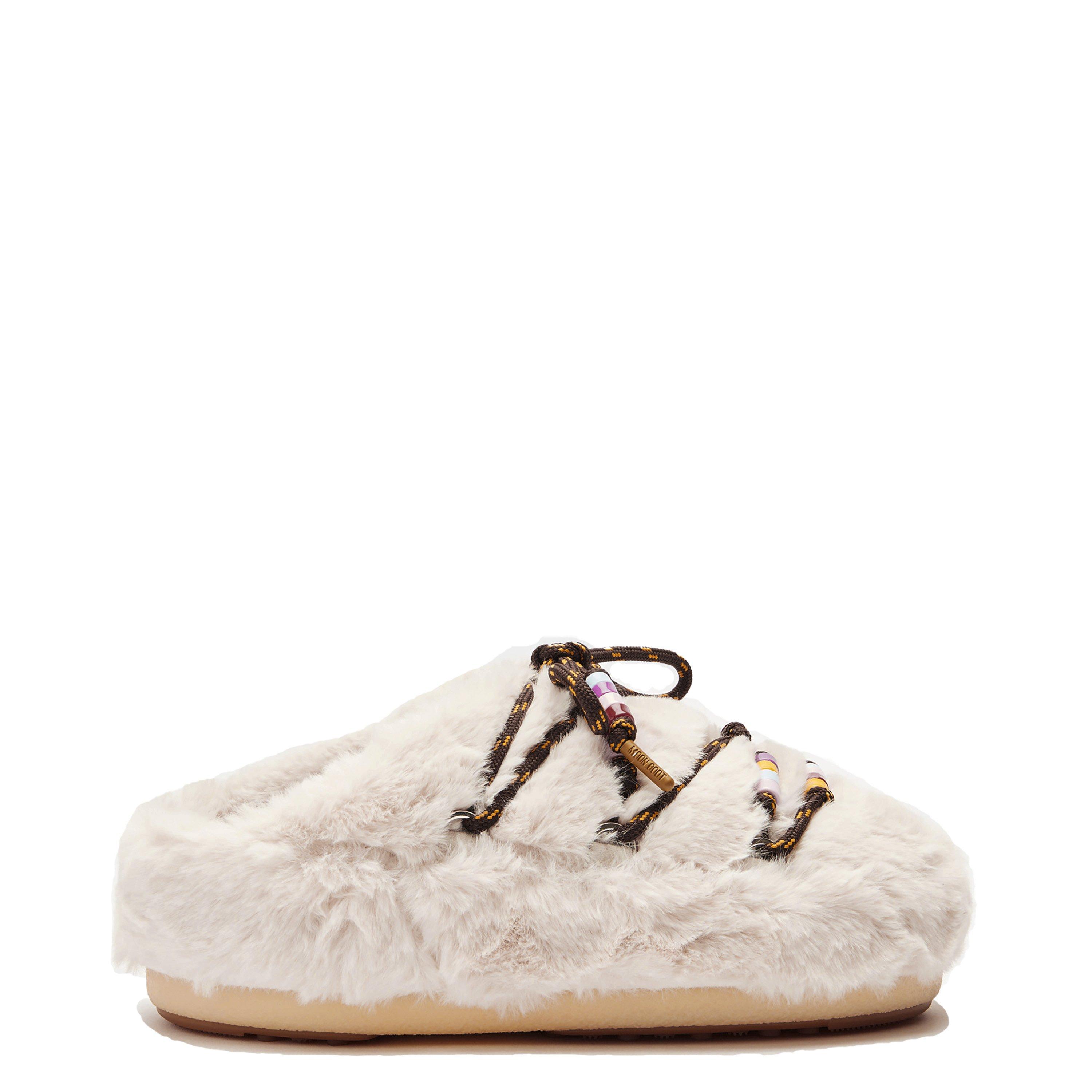 These mules take otherworldly comfort and style into orbit. They’re crafted from faux fur that's been treated with a water-repellent coating and padded with a plush foam lining. Suction pads on the flexible rubber tread sole of serious ground control.