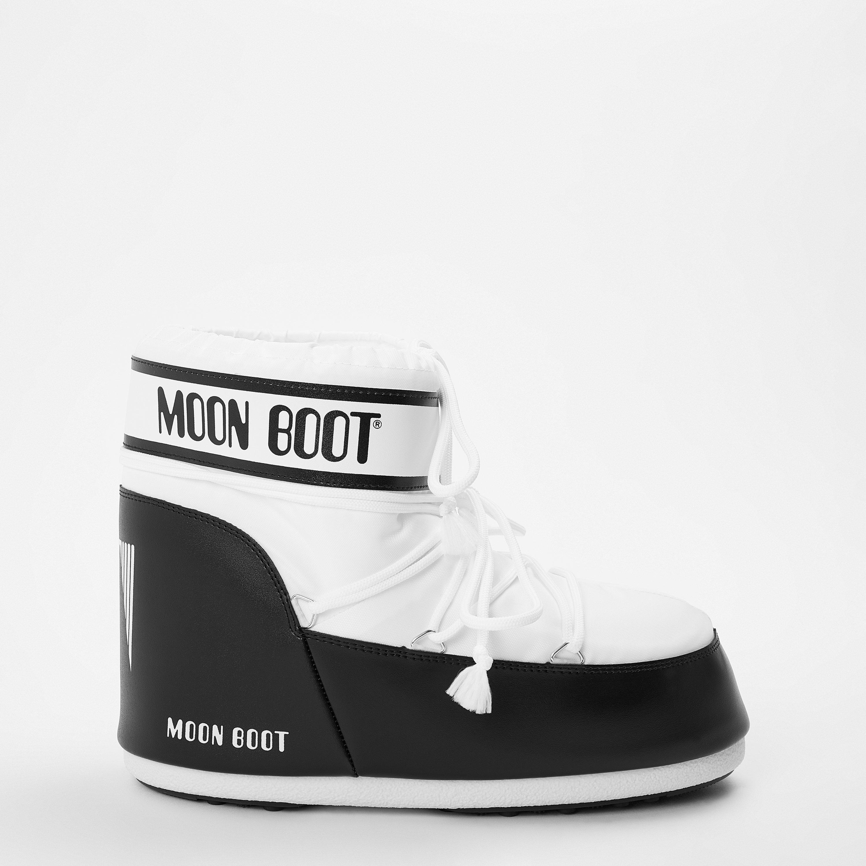 Get in the mood for ski season with the Moon Boot Icon Low Nylon Snow Boots. Produced to a regular fit from the original iconic design inspired by astronauts uniform, these water resistant design features a lace closure to the lower length upper while the lightweight and padded insulating technology keep your feet warm and comfy all day across snowy terrain. Crafted with a textured tread to the sole for optimal grip, this pair are defined with a solid colour block with a contrasting heel and lower panel for added stability while the large Moon Boot branding signs off the look.