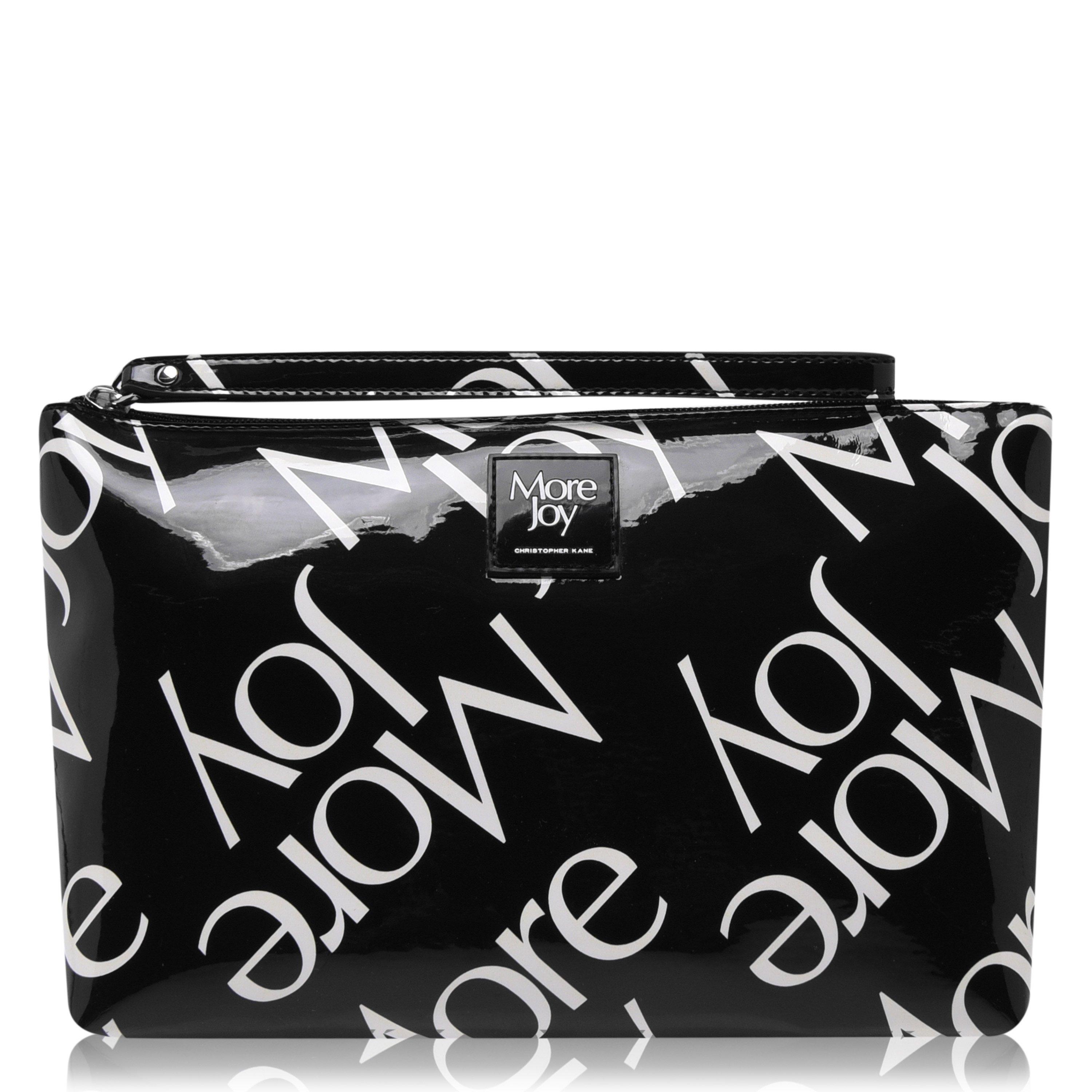 Designed with an all over branded print and signature patterning throughout, the Wash Bag from More Joy will become an essential for at home storage, travel, weekends away or makeup. Styling a large main compartment and zip fastening, this handy accessory has been crafted with a waterproof and stain resistant outer so there is no mess or spillages. H 18cm x W 29cm x D 9.5cm.