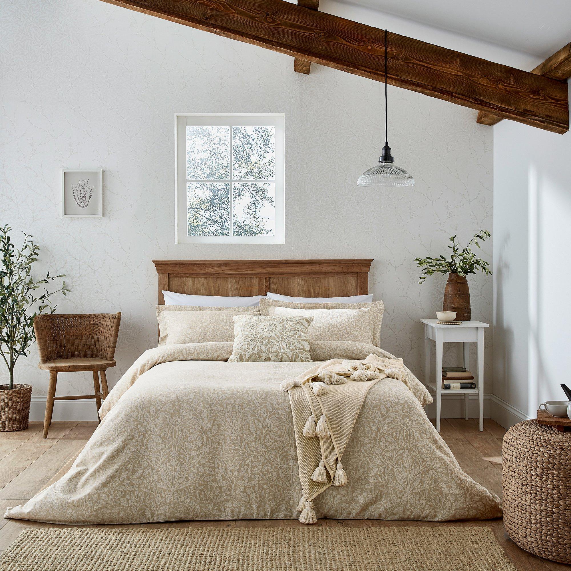 Mighty oaks from little acorns grow. This 1879 design from the hand of William Morris evokes its creator’s deep fascination and love for nature. Embedded into his and many others’ conception of Englishness, the oak and its bountiful acorn fruit are a symbol of the countryside at its most enthralling. This charming design with a repeating acorn motif is translated onto bedding with a sumptuous jacquard weave and 100% cotton. Oxford Pillowcases sold separately.