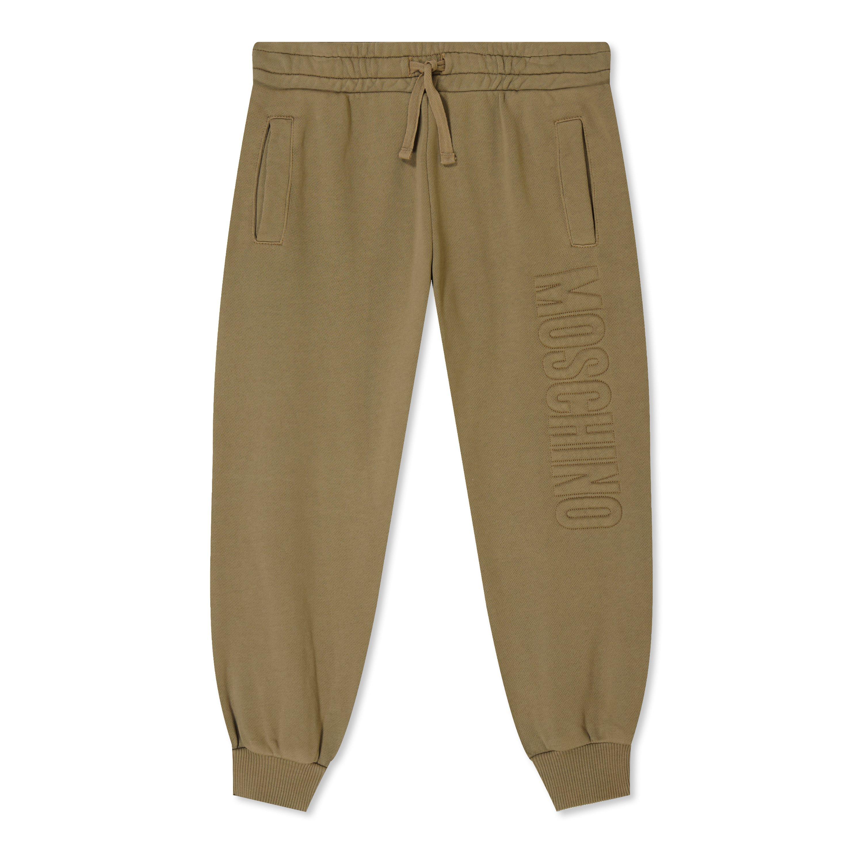 Elevate your little one's wardrobe with the Embossed Jogging Bottoms brought to you by Moschino. Expertly crafted in high-quality cotton, this piece features an elasticated drawstring waistband, two welt pockets on each side, and ribbed cuffs for comfort. Solid block colouring characterises the design and offers great flexibility when pairing these joggers with the rest of your little man's wardrobe. Finally, the embossed Moschino logo to the left leg completes the look and offers instant brand recognition. Always refer to and follow garment labelling for care instructions.