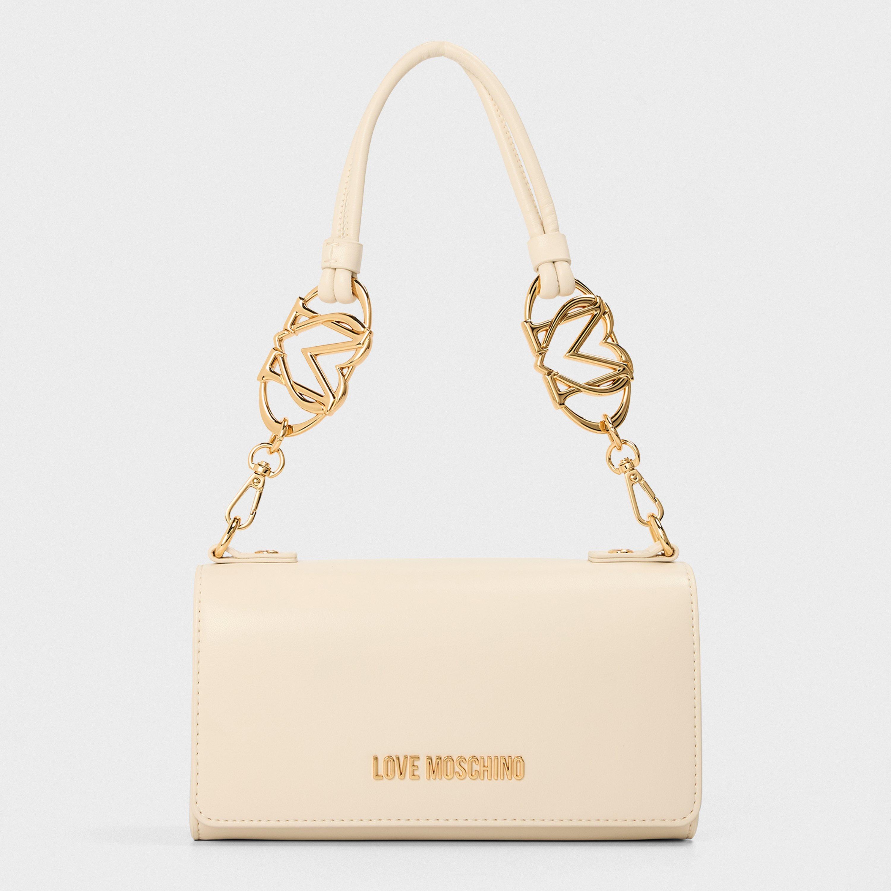 Elevate your accessory game with our luxe collection of Moschino handbags. Embrace Italian chic with a range of Moschino handbags in classic colours and vibrant hues, featuring curved silhouettes and structured designs. Choose chain designs for a chic evening option or opt for a Moschino crossbody handbag with fabric straps, perfect for on-the-go fashionistas. To infuse some colour into your ensemble, opt for a pink Moschino handbag with diamond-quilted faux leather fabrication and gold-toned branding on the front for instant designer appreciation. Shop now and find the ultimate accessory that exudes luxury and glamour.