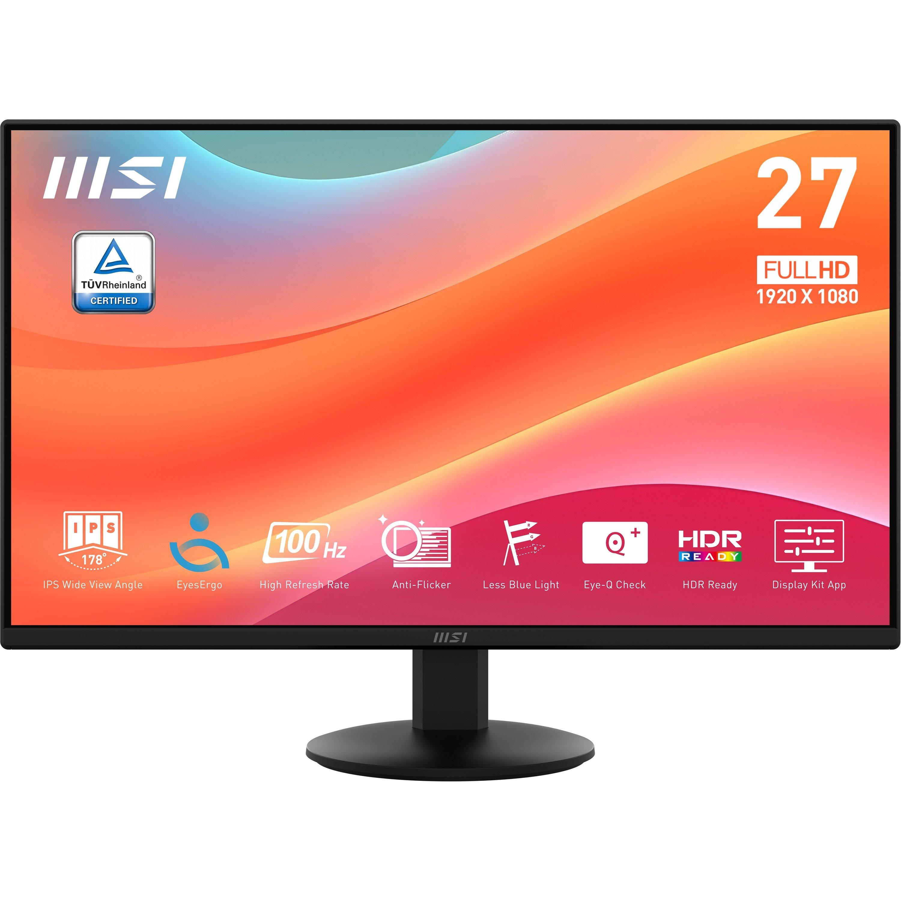 MSI PRO MP272L 27 inch 100Hz Full HD IPS Monitor • Screen Size: 27 Inch • Panel Type: IPS • Response Time: 1 ms MPRT • Refresh Rate: 100 Hz • Sync Technology:Adaptive Sync Technology Business & Productivity MonitorThe MSI PRO MP272L PerfectEdge monitor features a 4-sided frameless design and 100Hz refresh rate to provide users with a smoother and more immersive viewing experience. Outfitted with a compact base stand, EyesErgo technology, and easy-to-use hardware such as MSI Power link, the PRO MP272L ushers in a new era of workplace monitors optimized for comfort & productivity.27 FHD IPS PanelFeatures a large 27-inch FHD (1920 x 1080) IPS panel suitable for home or commercial office environments.PerfectEdge DesignThe PRO MP272L monitor features a PerfectEdge (4-sided frameless) Design making it 37.5% slimmer than standard monitors. With a high screen-to-body ratio of 92%, it offers a more immersive viewing experience with less distraction. This design not only boosts productivity but also allows for seamless multi-display setups, providing an immersive experience for both work and light gaming.100Hz High Refresh Rate 100Hz refresh rate delivers smoother visuals, reduces motion blur, and enhances gaming responsiveness. For work, it ensures smoother scrolling and transitions, improving comfort and efficiency.MSI Power LinkMSI Power Link with HDMI CEC lets the MSI mini-PC be powered on by the monitor's button, enhancing efficiency and user experience.Premium Eye ComfortStay focused and reduce eye fatigue with built-in features designed to help improve work productivity: