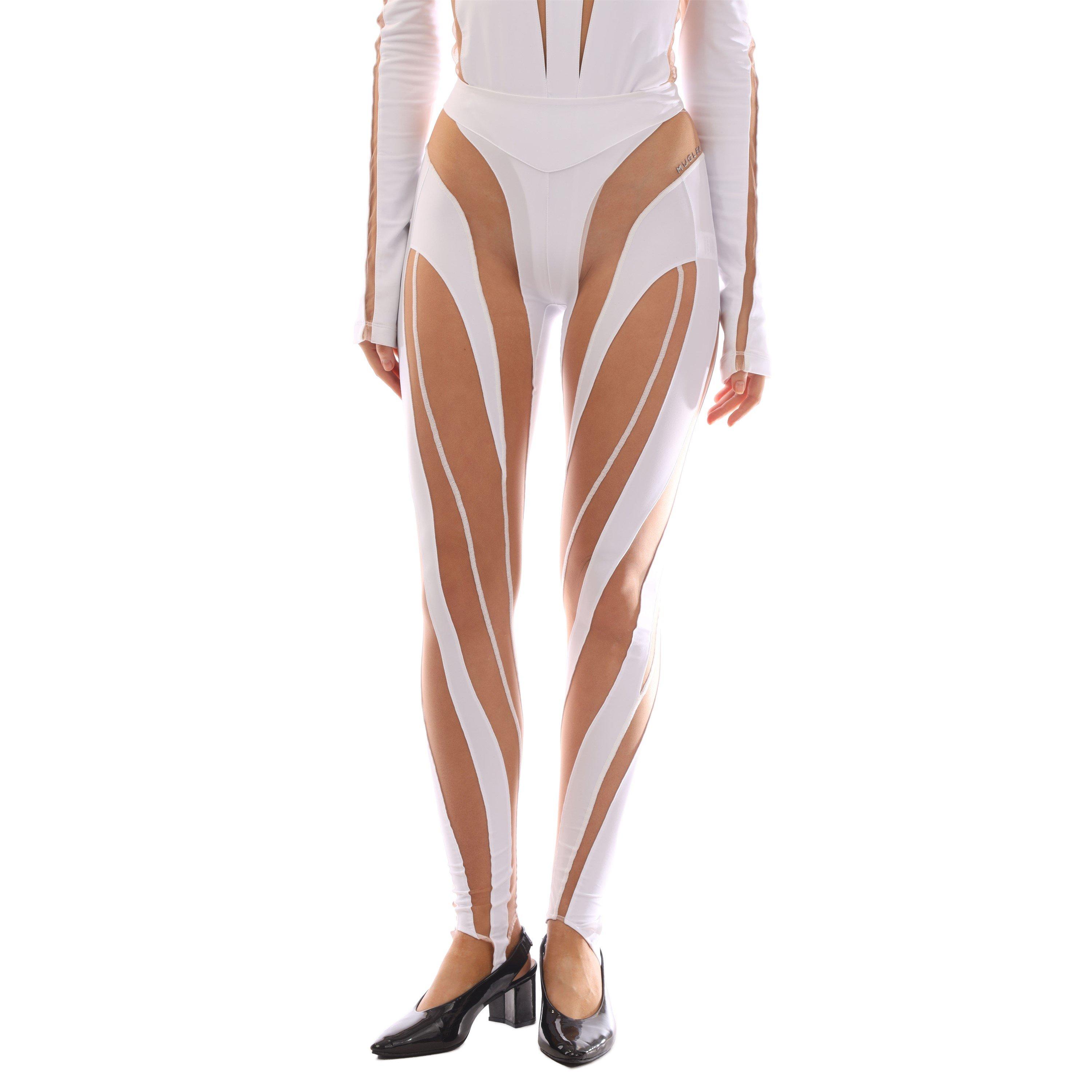 Mugler's Spiral Leggings sculpt and define with innovative contouring design. The spiral pattern creates a dynamic shape, while the stretch fabric offers both compression and flexibility for fashion styling.