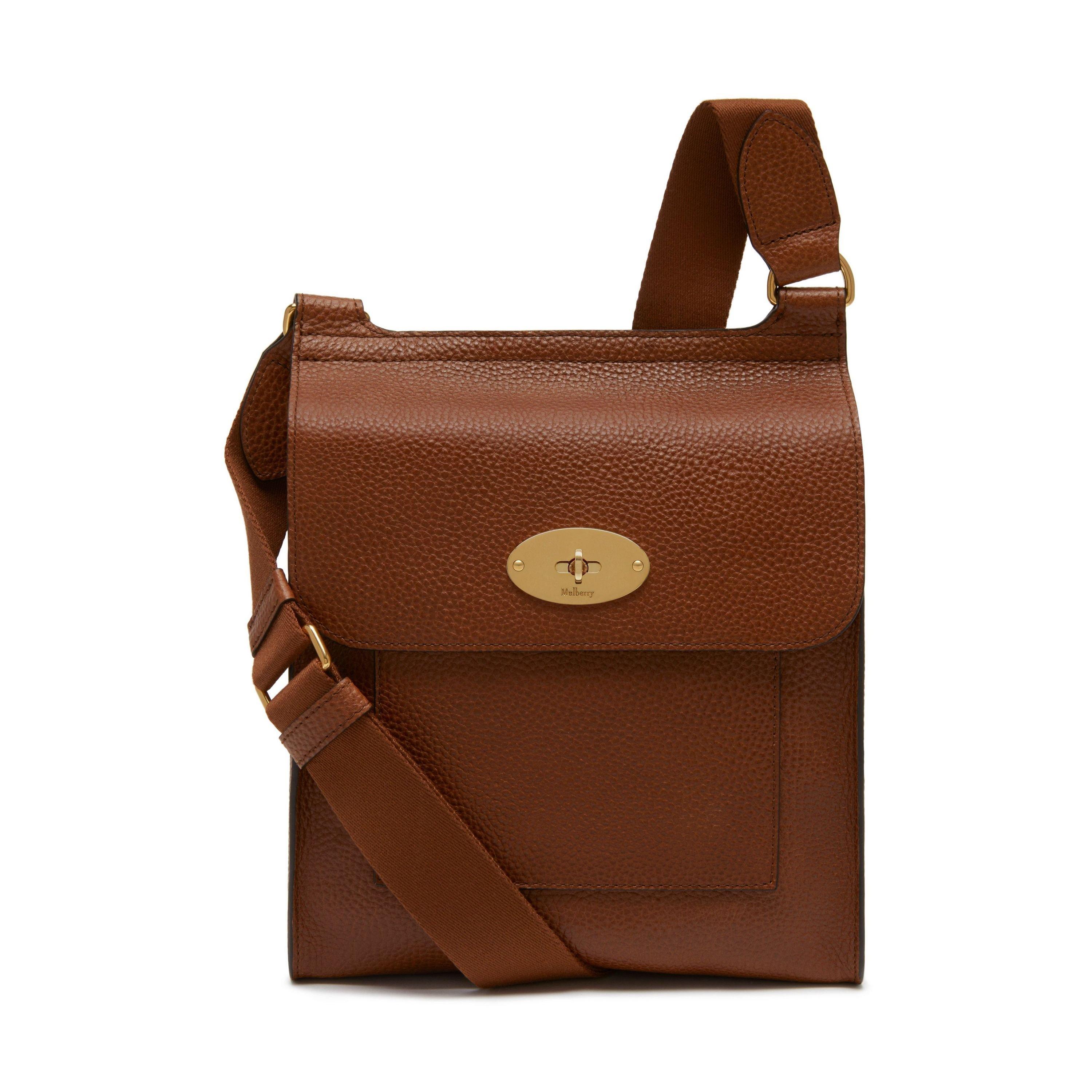 A classic Mulberry satchel, in a functional shape and unisex style. Featuring an adjustable canvas strap that can be worn across the body or over the shoulder, front flap closure with postman’s lock detail, outer slip pocket, and brushed leather interior.