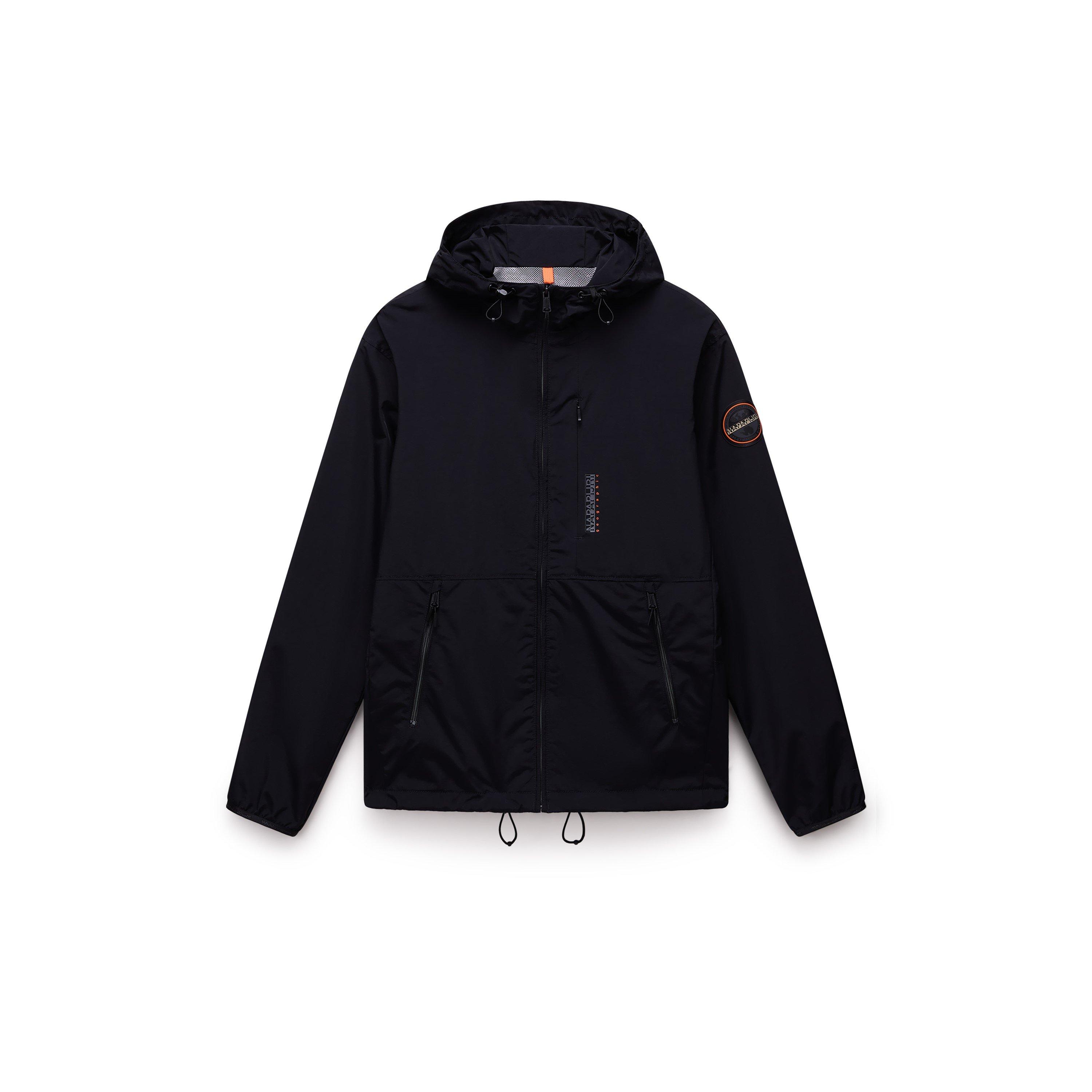 Napapijri's Tundra Weather-Resistant Rain Anorak offers technical performance with mountain-inspired design. This functional pullover jacket features a durable weather-resistant shell that protects against the elements while maintaining the brand's outdoor aesthetic.