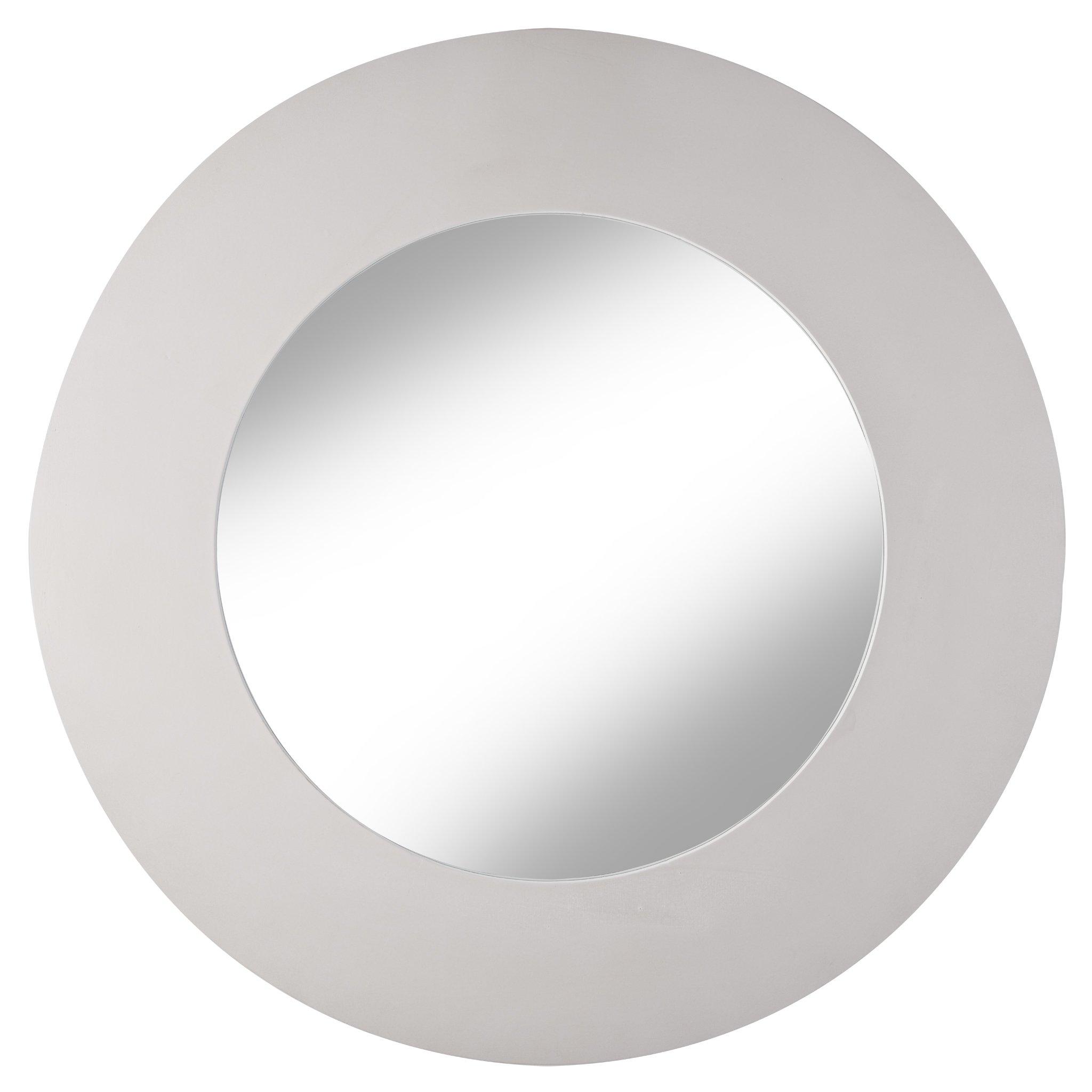 A stylish and versatile round mirror that’s full of charm. Finished in a stylish grey, this functional and decorative mirror will make the perfect addition to bedrooms, hallways, living rooms and dining rooms. Mirror height 90cm, width 90cm, depth 3cm. Glass height 60cm, width 60cm. A hanger is attached to the back of the mirror.