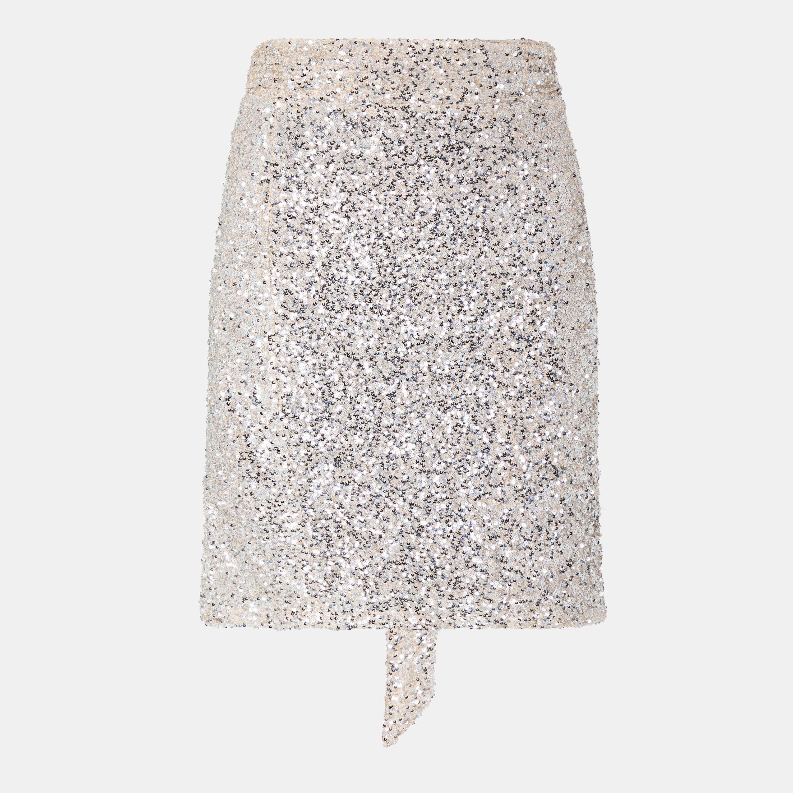 Make a statement at any soirée with the Never Fully Dressed Sequin Jaspre Mini Skirt. This season, sequins take centre stage, the silhouette is complemented by a side slit that embodies modern femininity. This mini skirt captivates as it catches and glimmers in the sunlight, exuding an iridescent allure reminiscent of a disco ball.