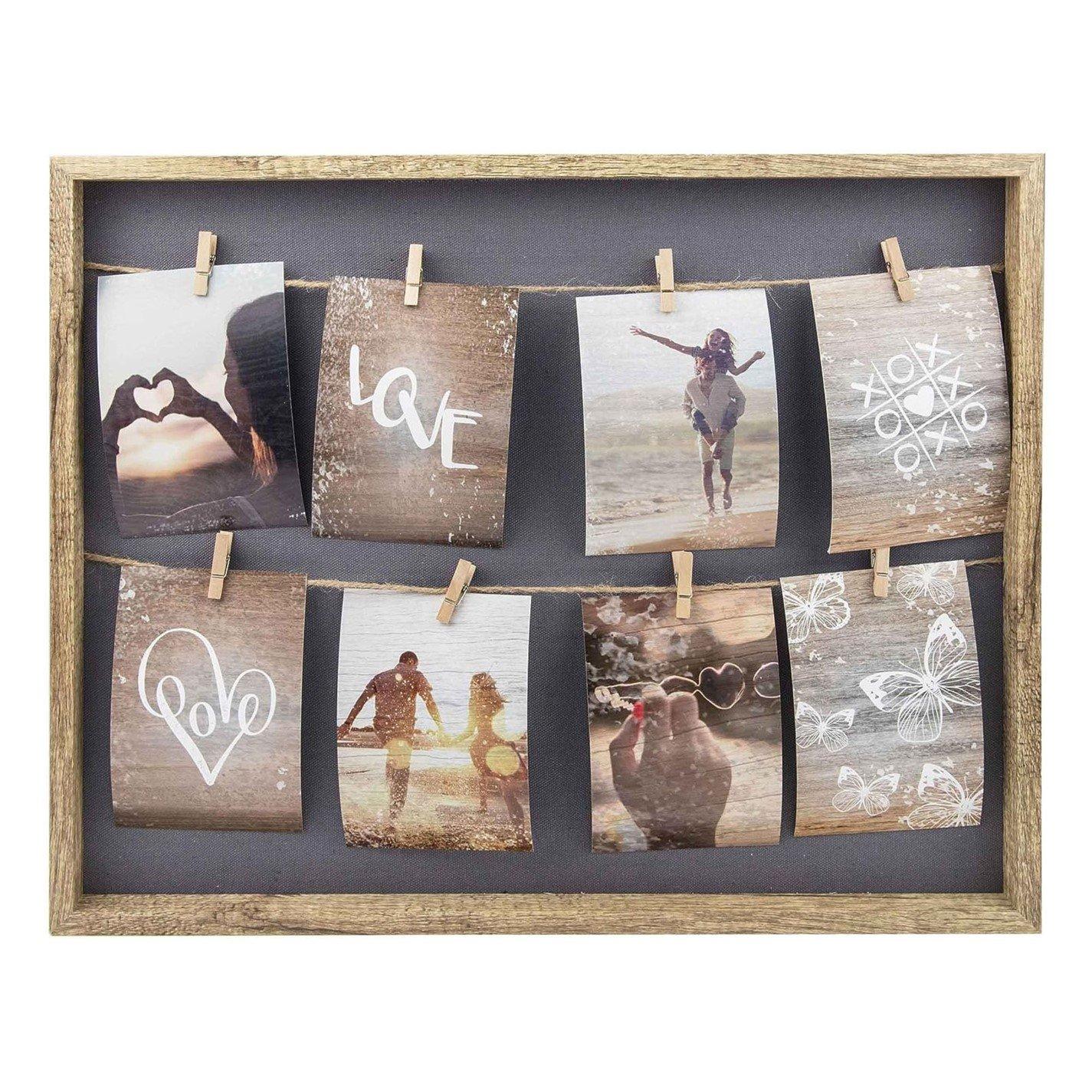 Display your favourite photos and mementos with this wooden clip frame that’s equipped with a rustic clothesline and 8 pegs. The easy way to showcase postcards, reminders, concert tickets, greeting cards, wedding photos and more. The frame is strong and durable while remaining stylish and lightweight. Trusted for over 40 years - nielsen is known for crafting unique and high-quality statement picture frames, photo frames and poster frames.