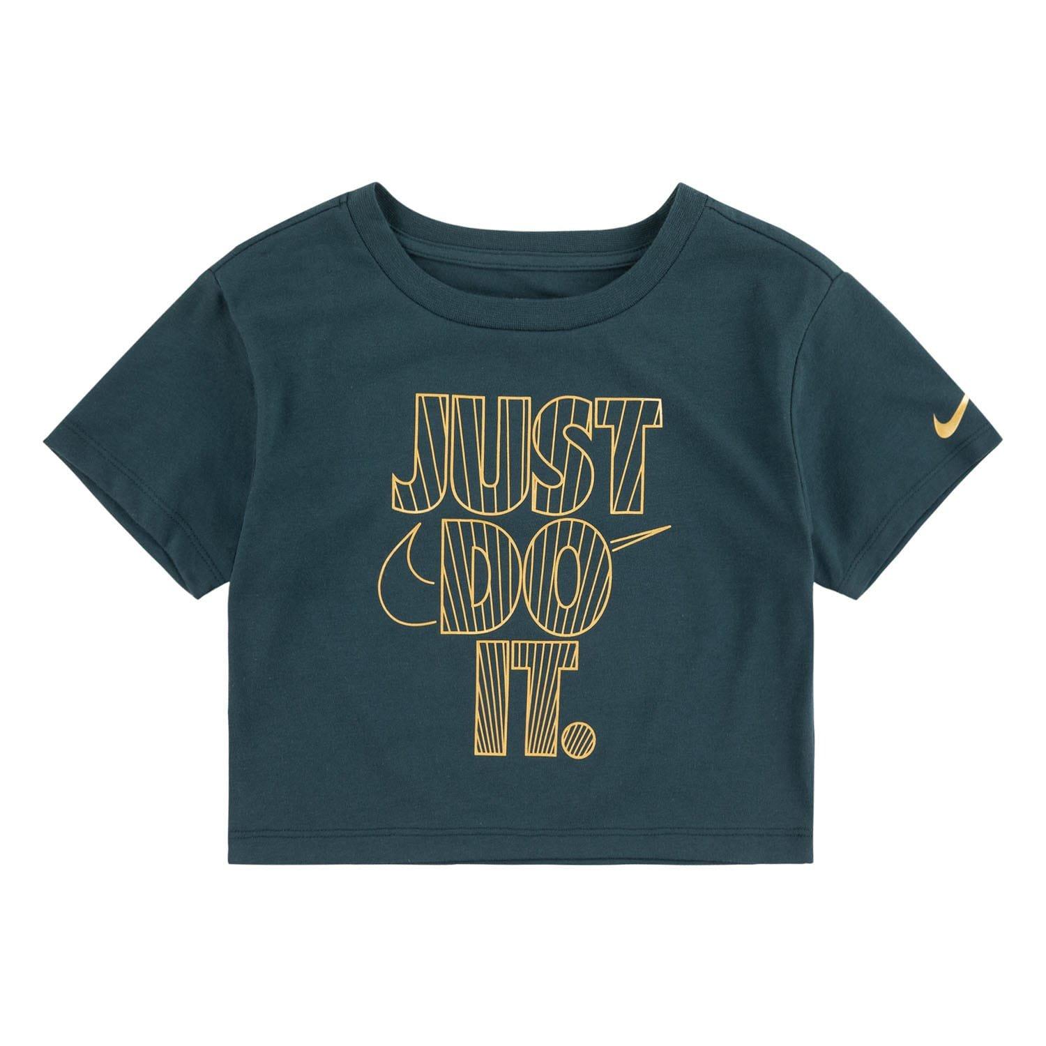 Ribbed crewneck. Short sleeves. Bold classic Nike Swoosh logo.