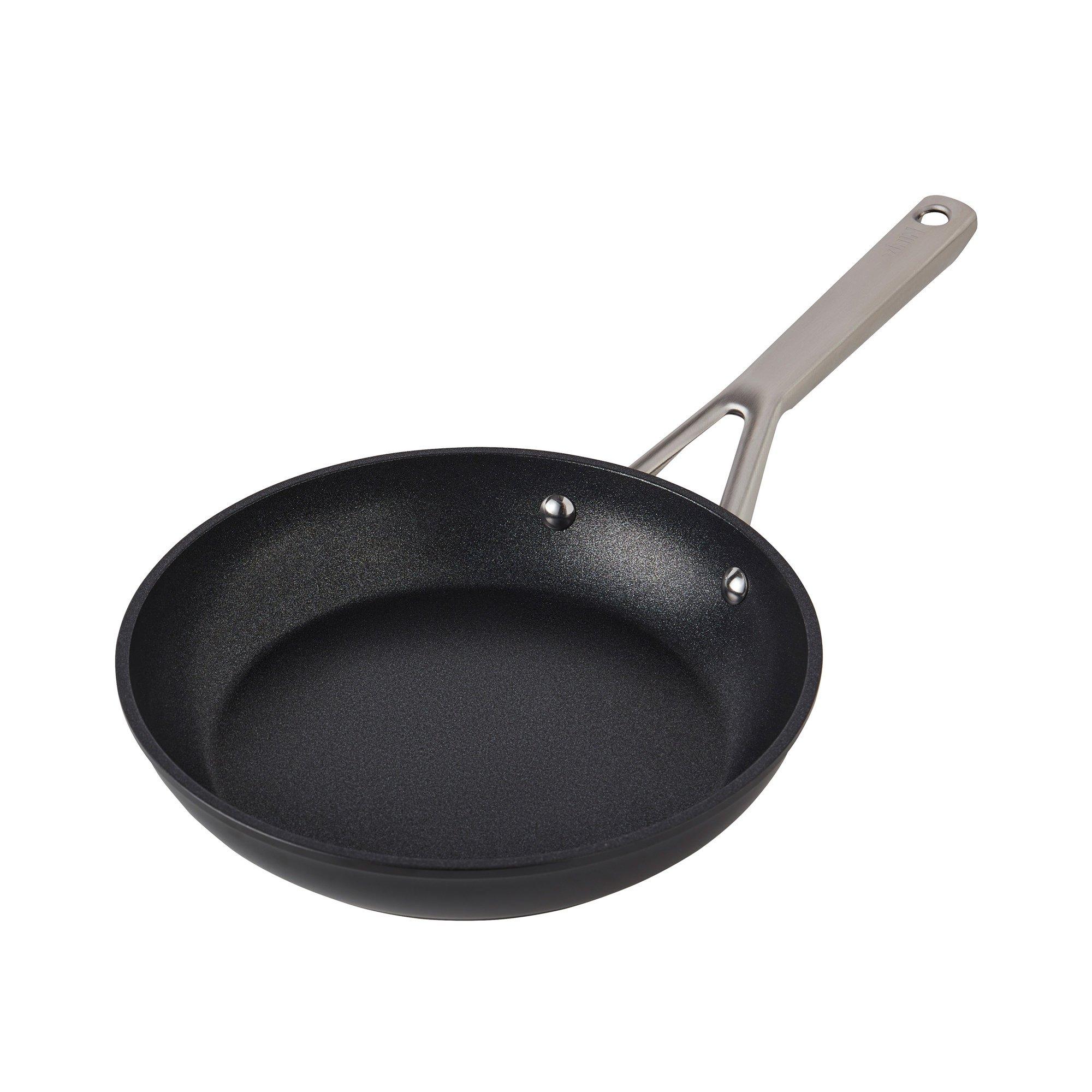 Your new kitchen essentials, designed for every day. Zero stick, chip or flake: Why settle for non-stick when you can have ZEROSTICK? Whereas other pans can rapidly lose their non-stick performance, Ninja ZEROSTICK is up to 20x tougher than traditional non-stick, tested to withstand 10,000 scrubs. Durable, long-lasting and guaranteed for 10 years. The difference is in the degrees: ZEROSTICK is precision engineered at 17,000°C, fusing plasma ceramic particles to the surface of the pan to create a robust textured surface that interlocks with Ninja’s exclusive coating. The extremely durable, textured cooking surface is metal-utensil safe, scratch resistant and dishwasher safe for easy cleaning. PFOA, lead and cadmium free. 10-Year Guarantee: Covered by Ninja's 10 Year Replacement Guarantee, including the ZEROSTICK coating. Built to last: The Essentials collection is made from forged aluminium with a smooth exterior and stainless steel handles that are comfortable to hold. Cook using little to no oil: Exclusive to Ninja, ZEROSTICK stops food from sticking day after day, so your creations easily slide from the pan to your plate. Use little to no oil for a healthier way to cook, without compromising on cooking performance – sear like you can in stainless steel, without sticking. From golden caramelised onions to the perfect fried egg, this versatile frying pan is a must-have in any kitchen. Induction compatible: Suitable for all hob types including induction, gas, electric and ceramic. This 24cm frying pan is suitable for a 16cm induction ring. Do you use an induction hob? Did you know the size of your pan can affect cooking performance? Always make sure you choose pans that are the same size as your hob ring, as induction technology only works effectively if the base of the cookware matches the size of the ring on the hob. If your pan base is smaller than the hob ring, it may not be recognised. Oven safe to 260°C: Start your creation on the hob, finish to perfection in the oven. Ideal for giving your omelette a bubbling topping or simply keeping your food warm. Want to complete your Ninja kitchen? Ninja ZEROSTICK Essentials frying pans, saucepans and sauté pans are available in a range of sizes to suit any cook and every kitchen.*3rd party test lab coating abrasion testing 2022 **Upon registration with Ninja. When used as directed in the use and care guide., Essentials collection: Built to last from forged aluminium with a smooth exterior and stainless steel handles. Metal-utensil safe & scratch resistant Dishwasher safe PFOA, lead & cadmium free Cook using little to no oil Suitable for all hob types: Including induction, gas, electric and ceramic. Oven safe to 260°C 10-year replacement guarantee, including the ZEROSTICK coating*(*Upon registration with Ninja, when used as directed in the use and care guide. )