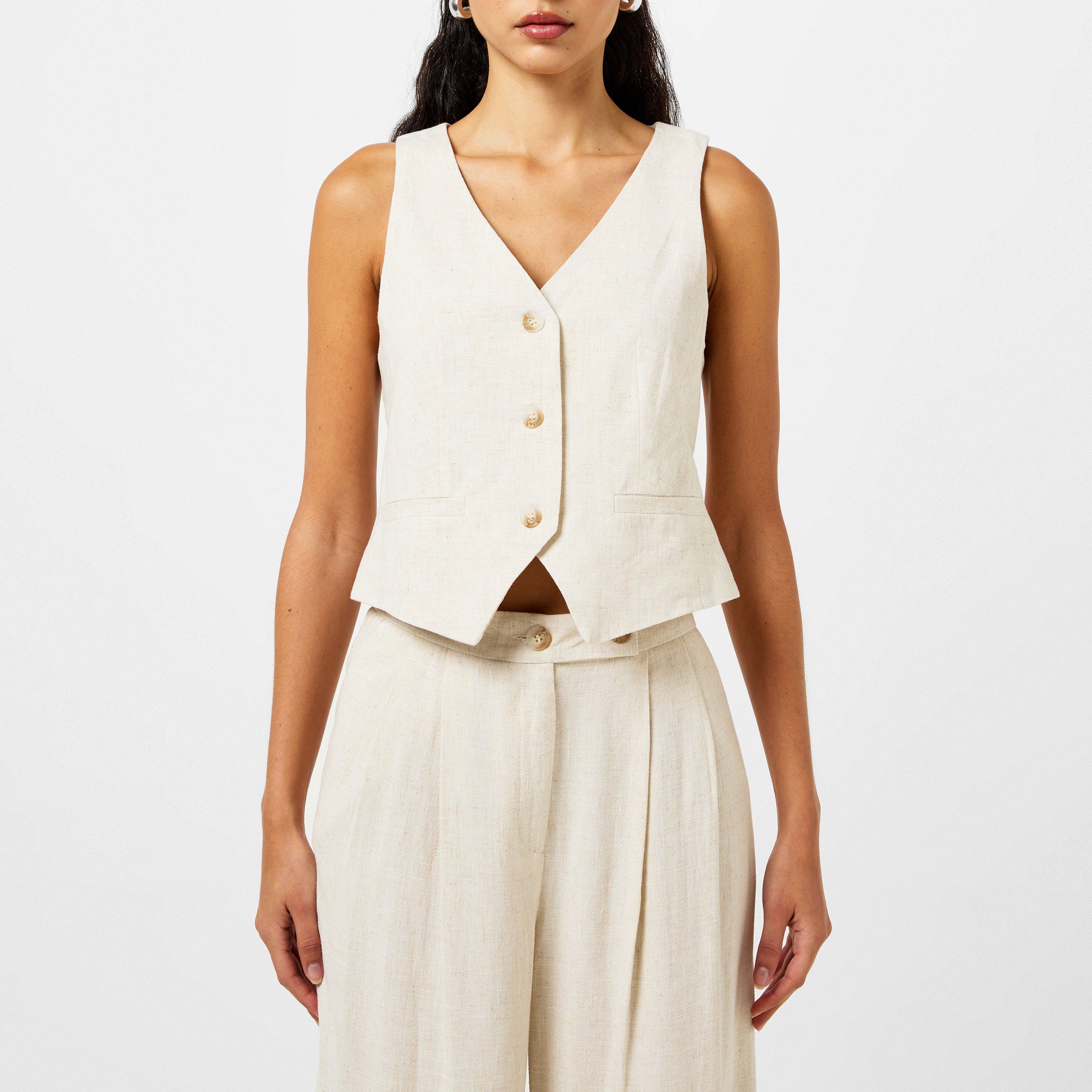 If you only buy one thing this summer, make it this. Expertly crafted from viscose with a dash of linen, this summertime waistcoat is a dream in cream. Tailored details include welt pockets and an adjustable strap at the back. Rock it as a two-piece with the matching wide leg trousers.