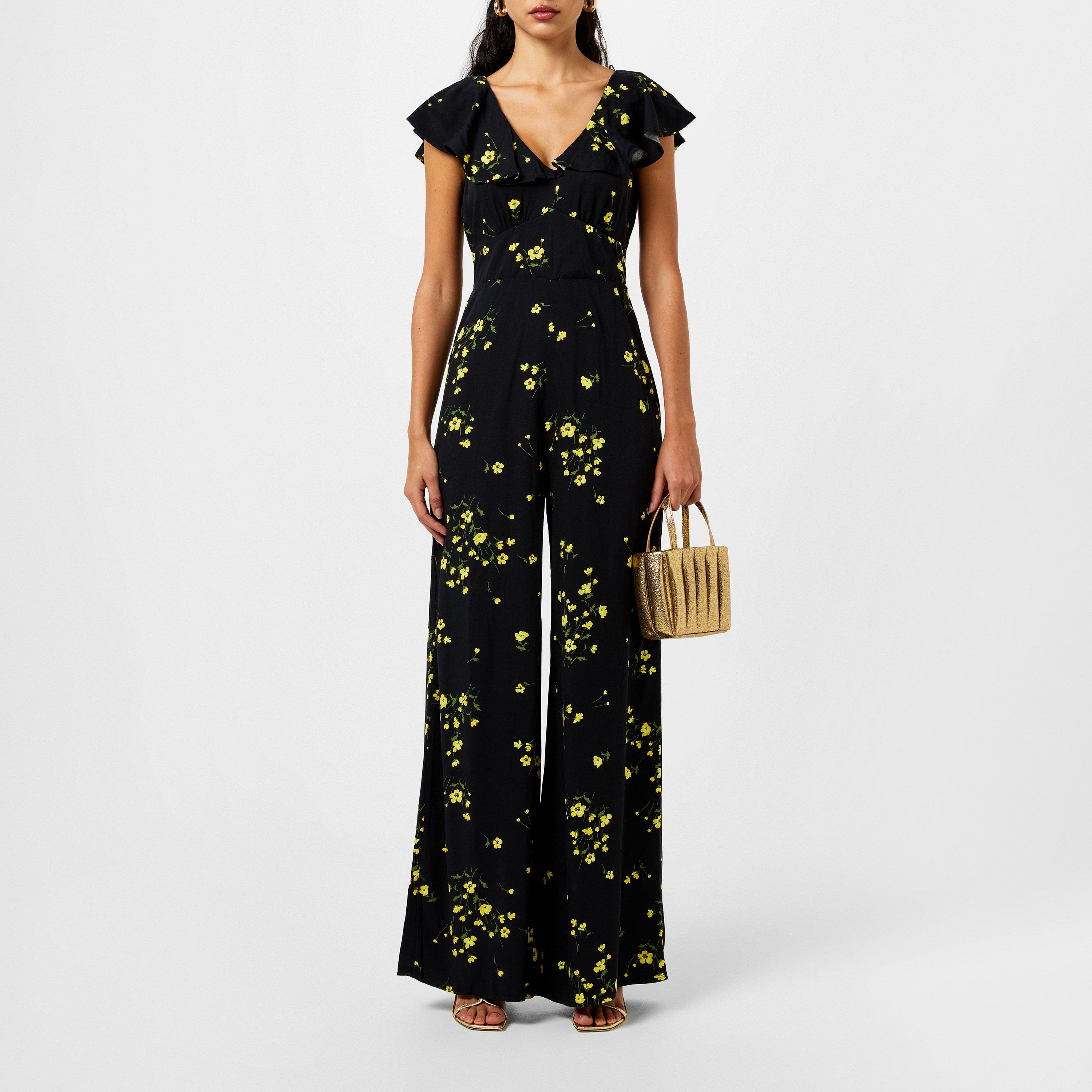 So 70s, so now. In a black and buttercup print, this stylish jumpsuit comes ruffled with a flouncy collar designed to float across your shoulders. A fitted waistline pulls you in before kicking out effortlessly to a pair of wide trousers. The fact Suki’s as pretty from the front as she is from the back isn’t to be overlooked. Team yours with barely-there sandals.