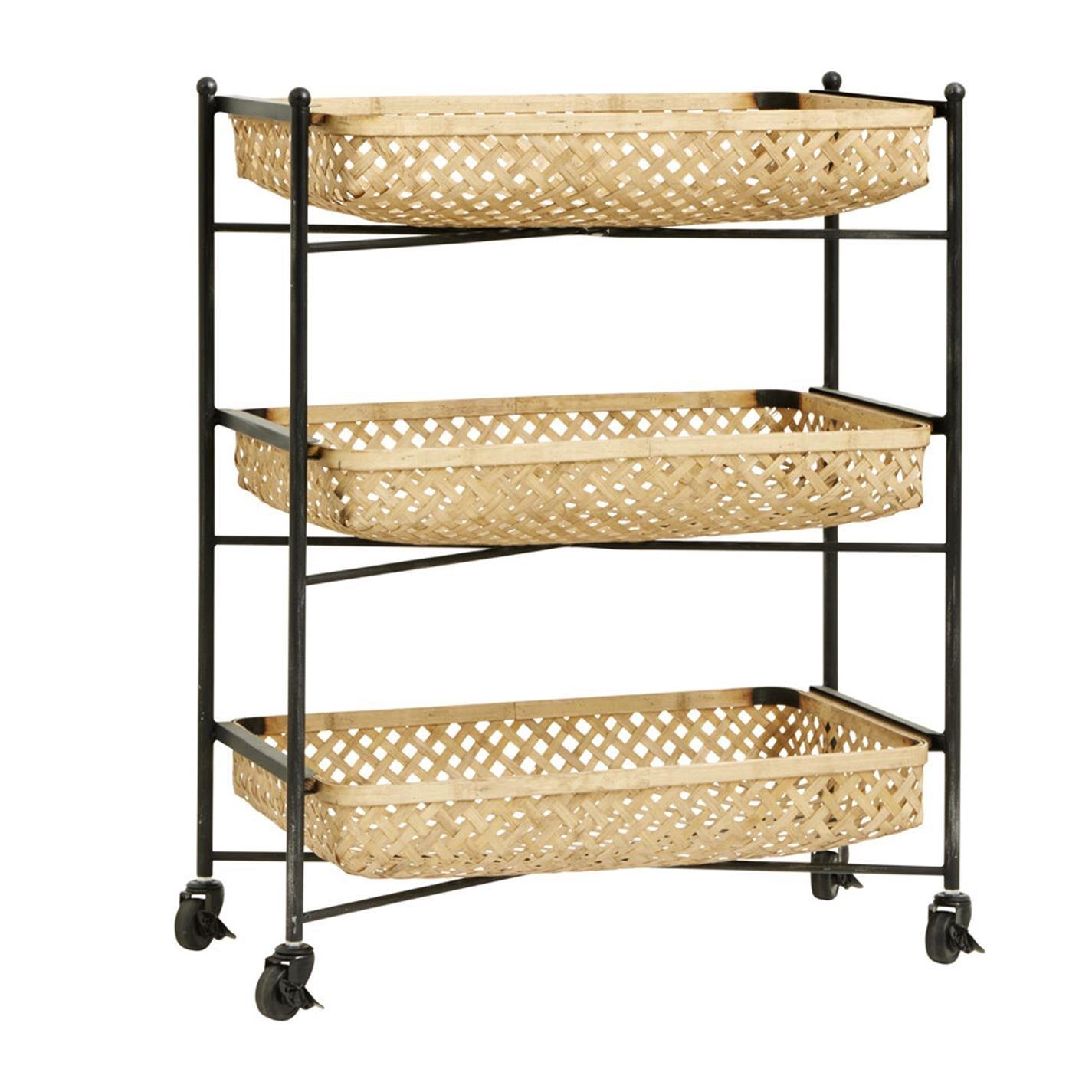 This trolley will make a handy accessory in any room of your home. Made from iron with three bamboo baskets, fill with bathroom essentials, kitchen necessities or anything else you can think of.