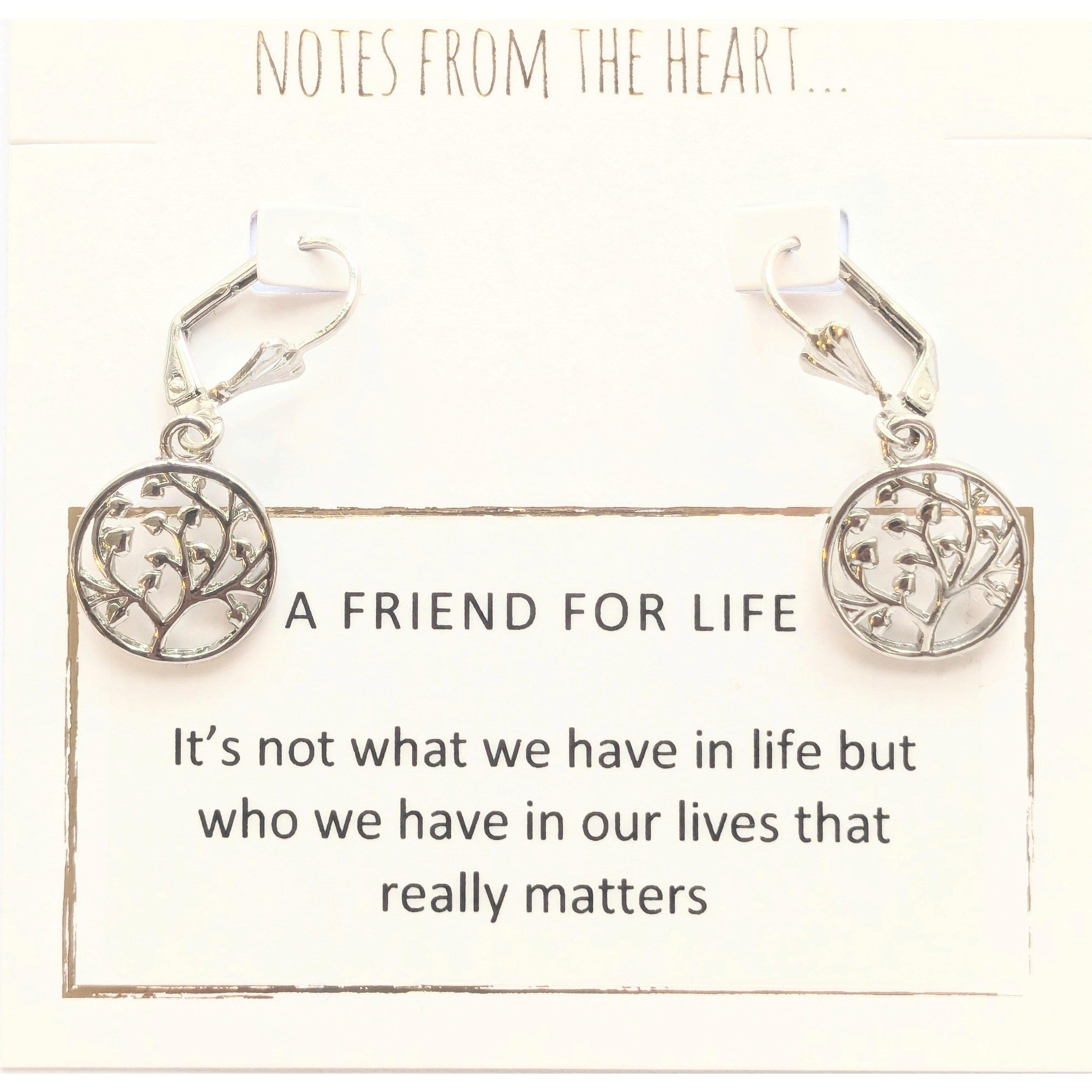 NFTH A FRIEND FOR LIFE Earrings Message on card reads: It's not what we have in life but who we have in our lives that really matters Dropper Earrings for pierced ears only. Comes with Gift Bag. Non Returnable due to hygiene reasons