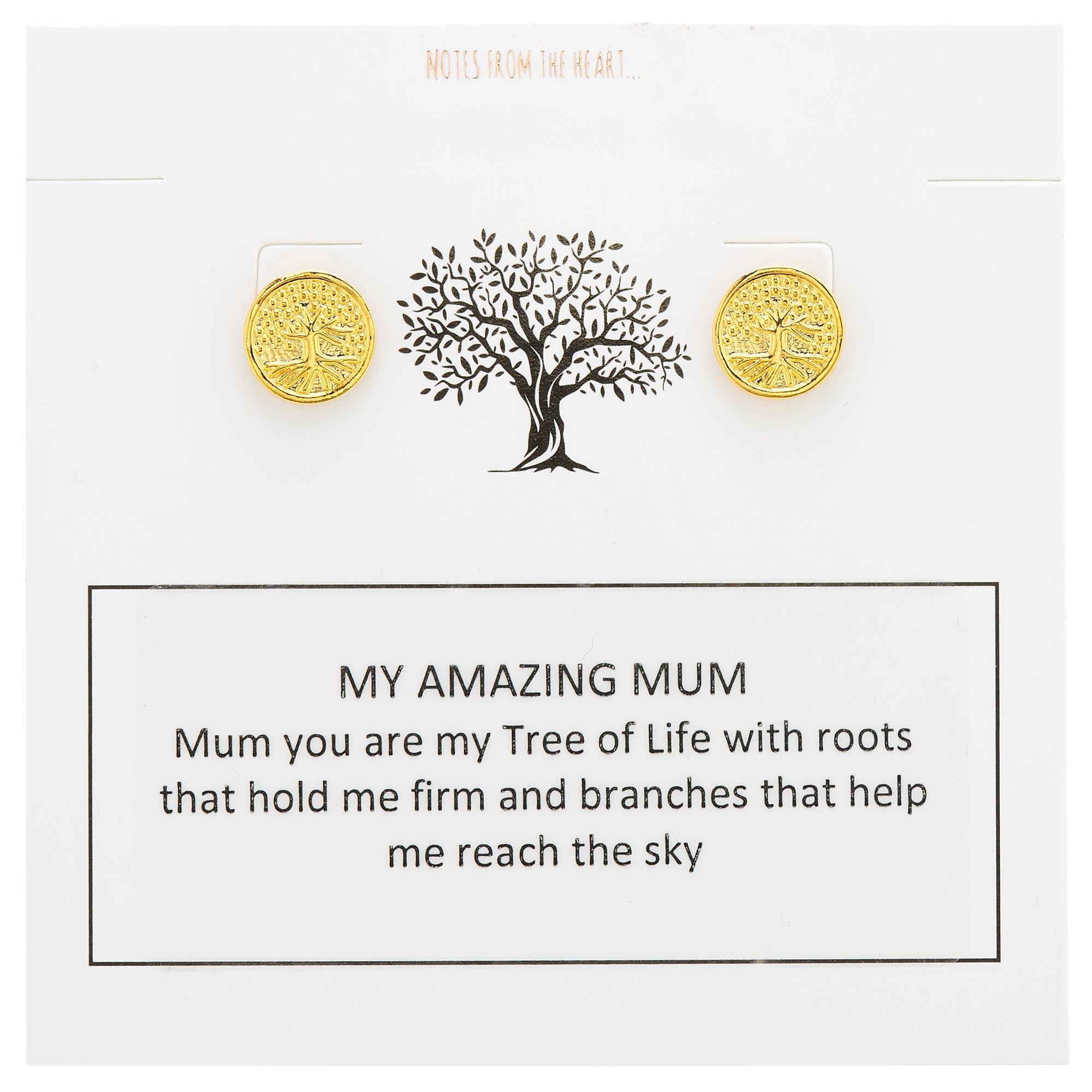 Gold Plated Stud Earrings Message on card reads - MY AMAZING MUM Mum you are my Tree of Life with roots that hold me firm and branches that help me reach the sky Alloy Metal Comes presented in a beautiful gift bag