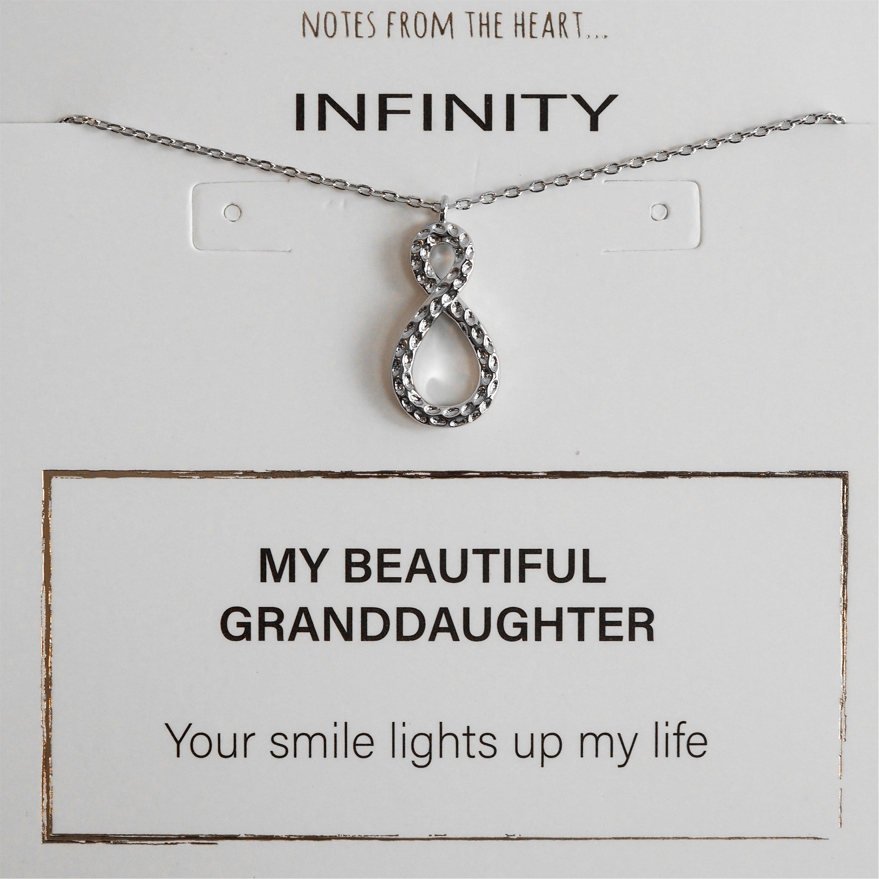 NFTH T-07NBG My Beautiful Granddaughter Message on card reads - Your smile lights up my life Infinity pendant - chain length 18 plus 2 extender Presented with a gift bag Material: Base Metal