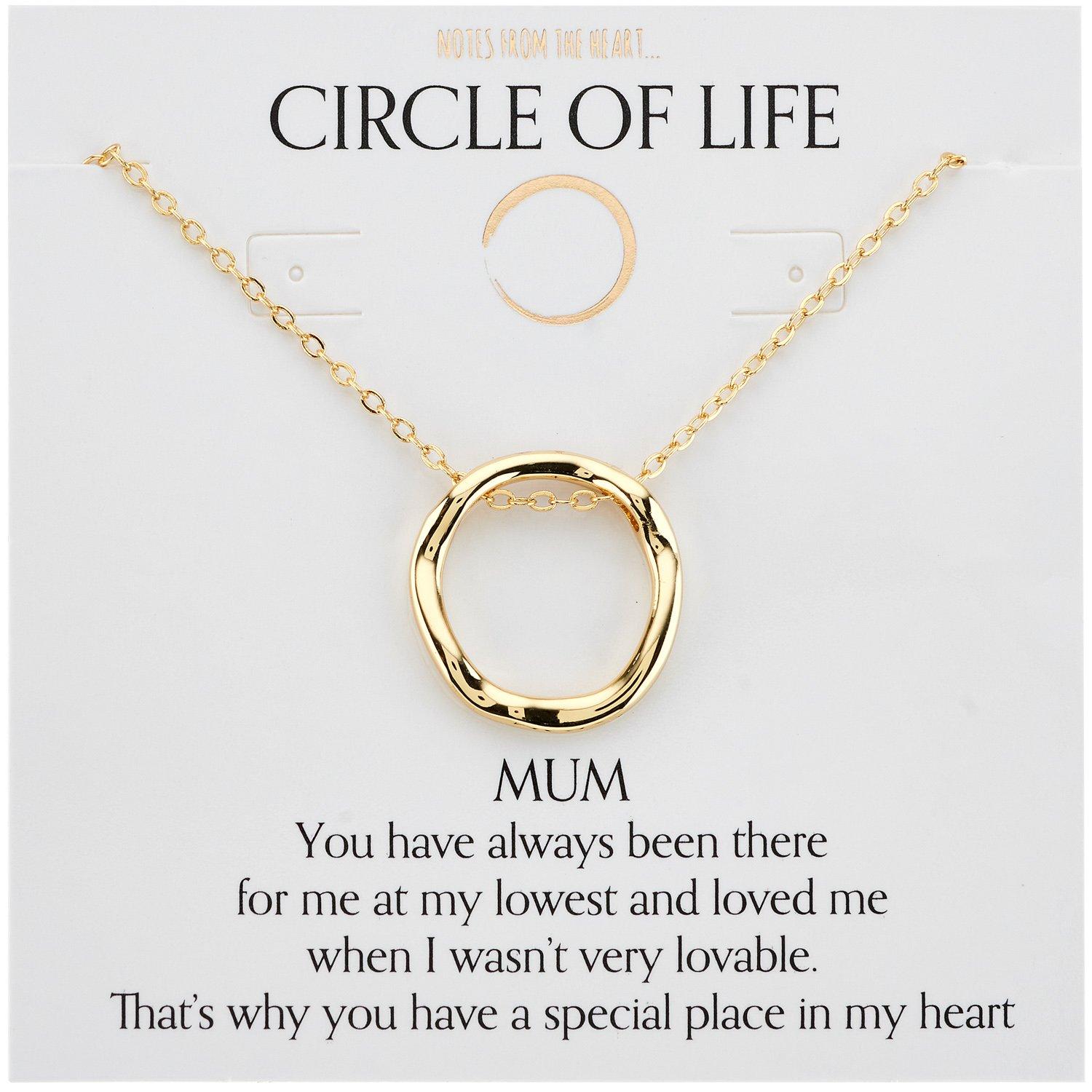 MUM Message -You have always been there for me at my lowest and loved me when I wasn't very lovable. That's why you have a special place in my heart Circle of Life Gold plated pendant on 18 chain + 2 extender Presented on a carded message and gift bag Matching Earrings Available