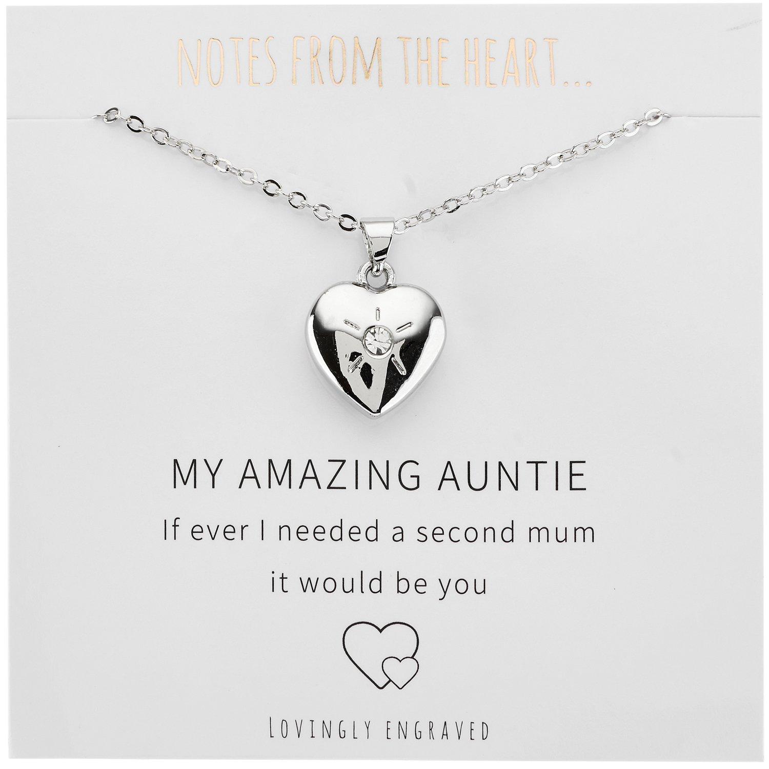 MY AMAZING AUNTIE engraved Pendant Message on card and reverse of pendant reads If ever I needed a second mum it would be you Rhodium plated.Chain length 18 with 2 extender Comes presented in a beautiful gift bag