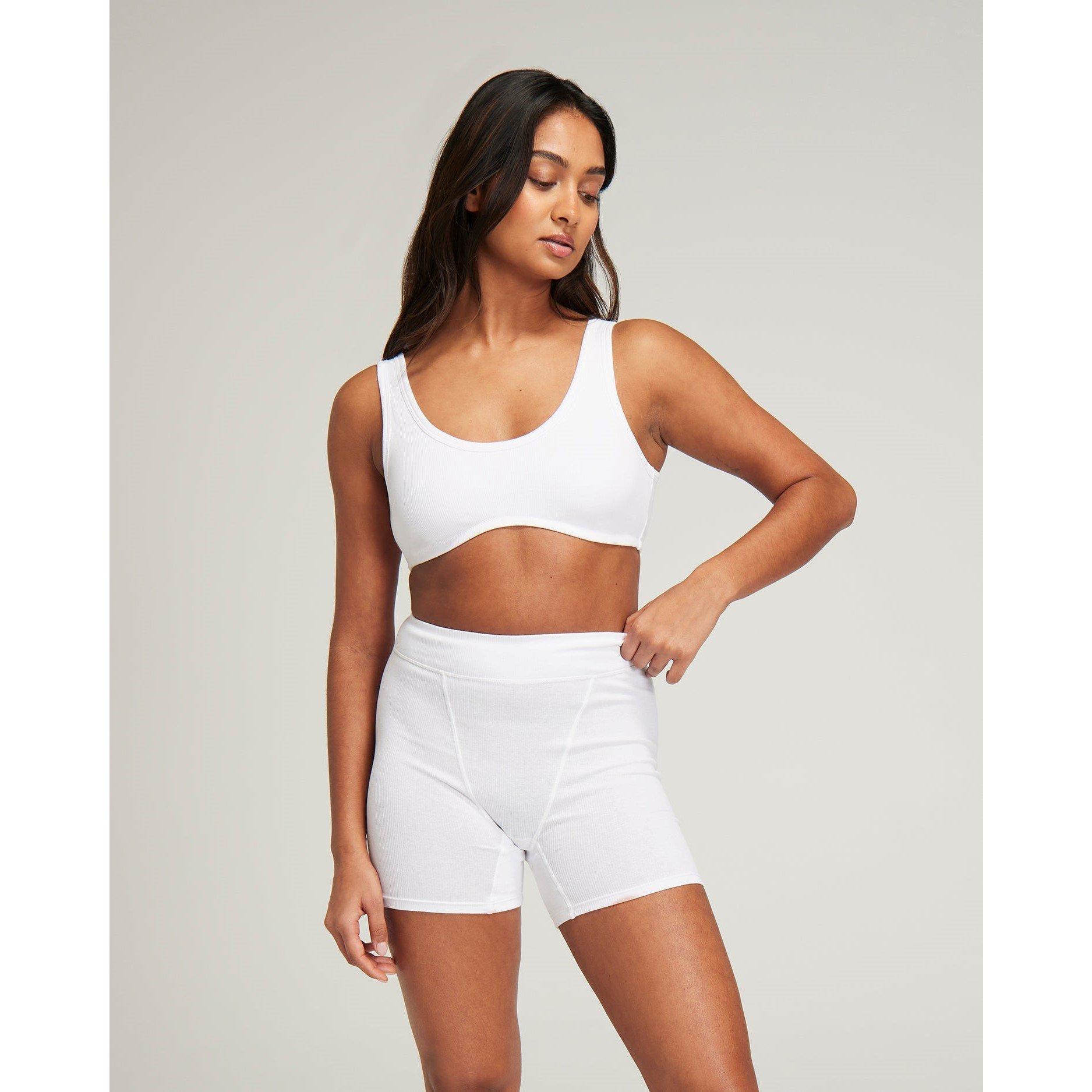Double-layered bralette with thick straps, scoop neckline and dipped underbust for a contoured everyday look. We recommend sizing up for a more comfortable fit. Made with 97% organic cotton and 3% elastane. Model wears XXL, Model wears M.