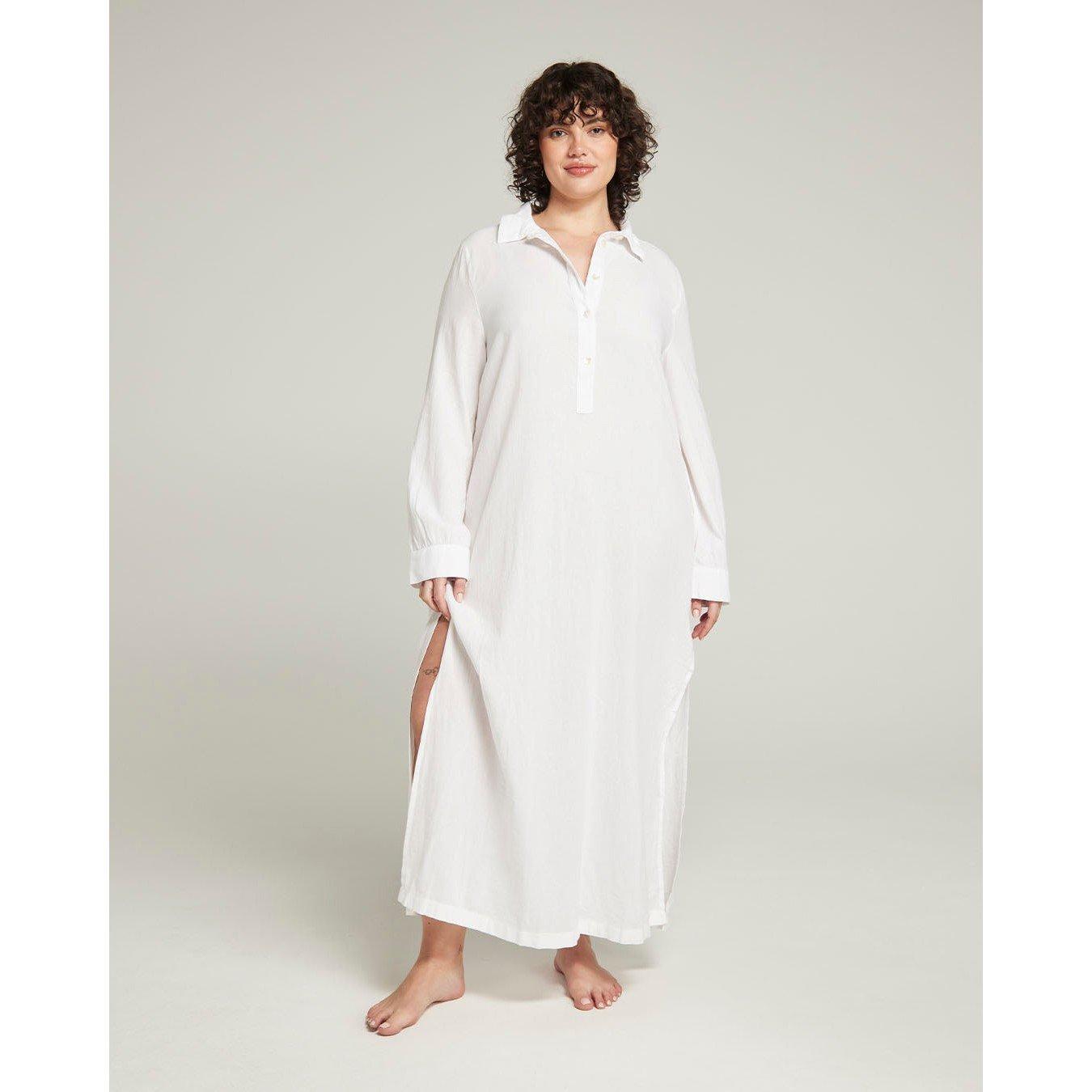 Discover effortless elegance in bed and beyond with this 100% organic cotton maxi shirt with chic side slits.