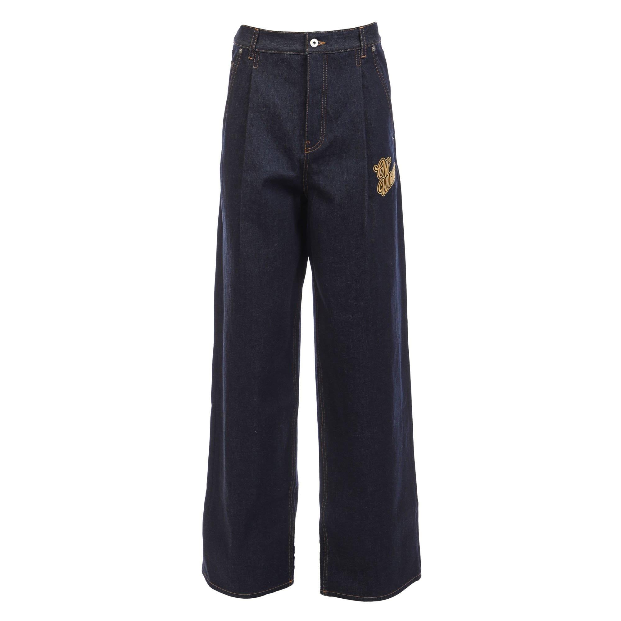 Mens Off White 90s Logo Baggy Tapered-Fit Jeans in blue.