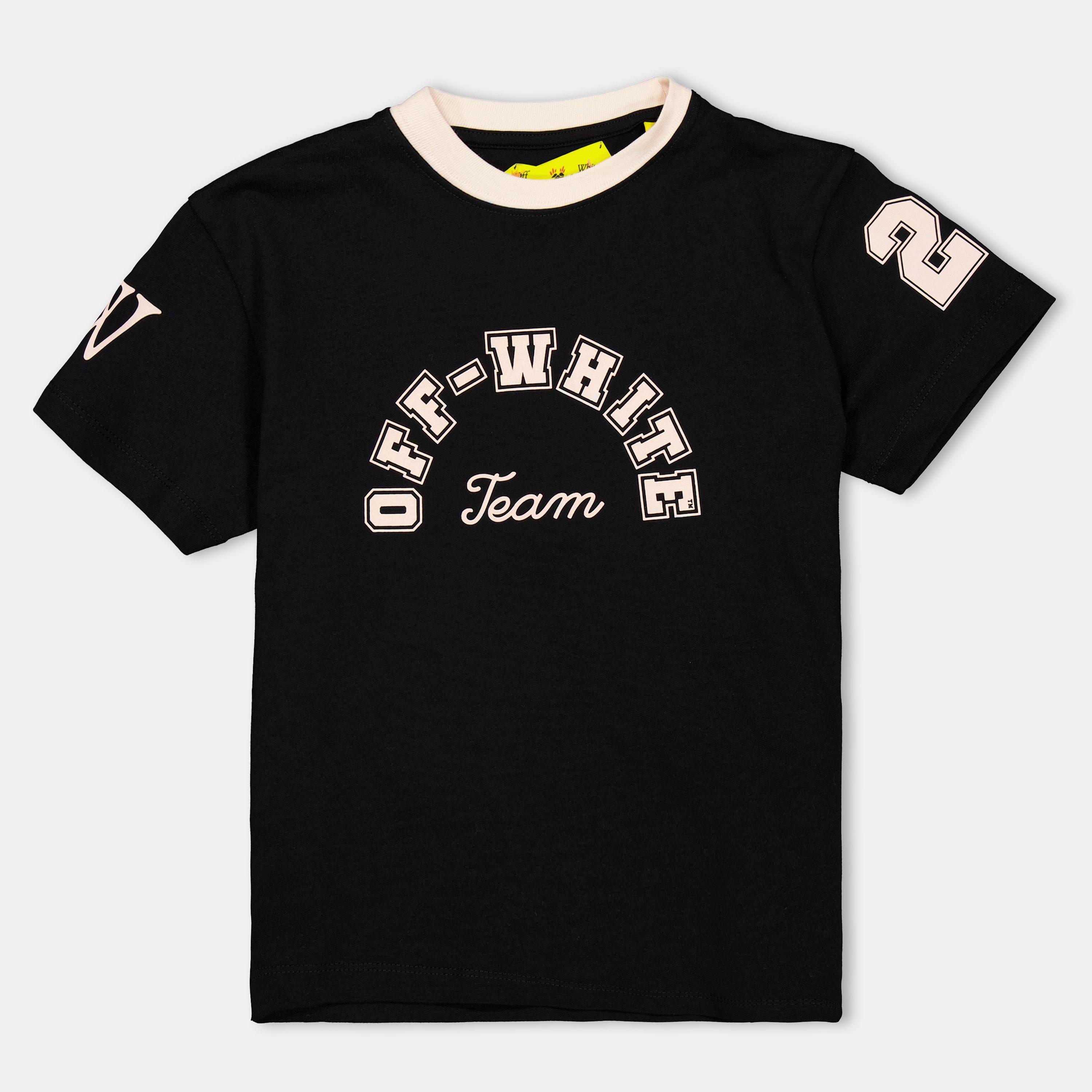 Off-White brings its distinctive style to youth wardrobes with this Regular Fit T-shirt. Clean cut meets bold visual elements for a piece that balances streetwear attitude with everyday wearability.
